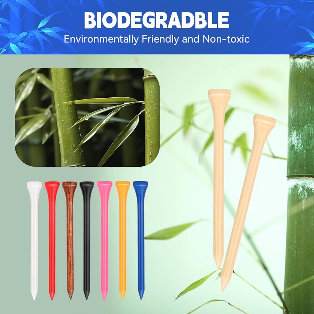 Precision milled from selected hard Bamboo for consistent performance,Bamboo golf tees are environmentally friendly,Non-toxic and biodegradable