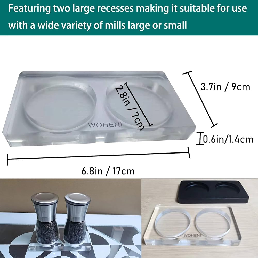 【أدوات عملية】: تم تصميم صينية مطحنة الملح والفلفل لتخزين مطاحن الملح والفلفل عند عدم الاستخدام. سوف تلتقط صينية الخشب أيضًا الفلفل المطحون الزائد أو الملح. يمكن وضع صينية مطحنة الفلفل على الطاولة، أو المطبخ، أو المنضدة، وما إلى ذلك، ولن تشغل مساحة كبيرة