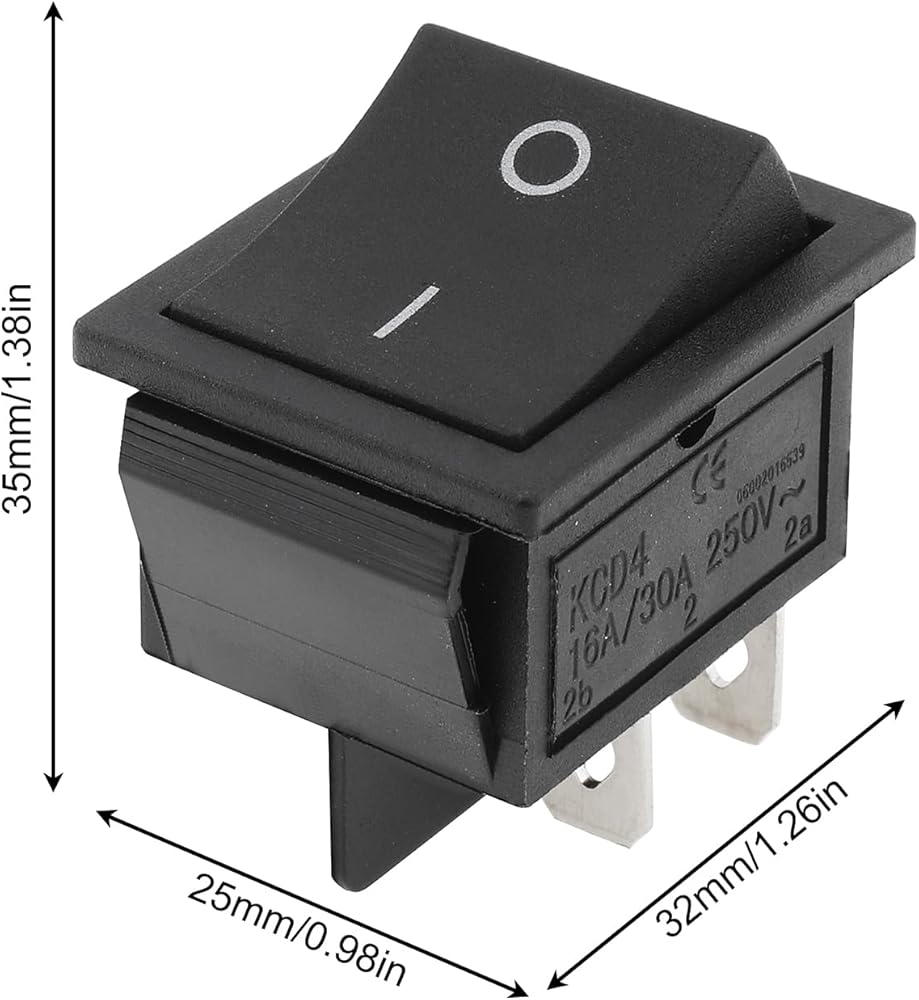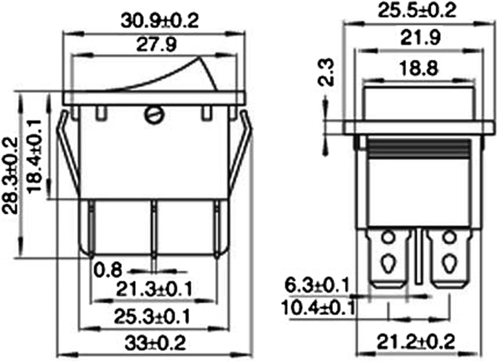 Voltage and Current: 15A 250V AC / 30A 125V AC; Size: 30.9X25.5mm/ 1.22x1''; Cut-Size: 28X22mm/1.1x0.86in (More size detail on picture); Color: Black button