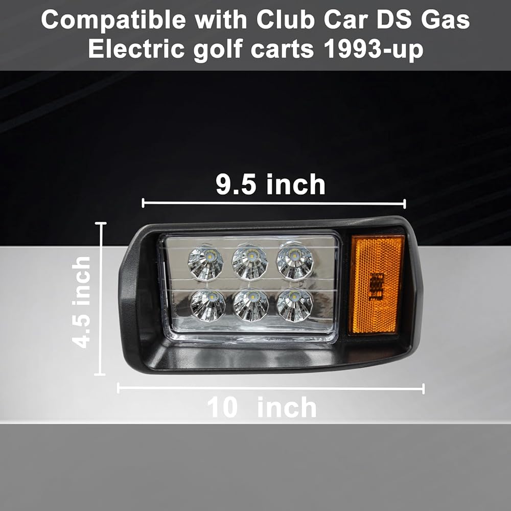 • ✅إعداد مثالي: مجموعة المصابيح الأمامية الجانبية للركاب والسائق Orle Oko DS متوافقة مع مصابيح عربة الجولف Club Car DS 1993-up الغاز والكهرباء (تستبدل المصابيح الأمامية المعدلة في المصنع OEM) ضوء LED الأيسر OEM # 101988002، ضوء LED الأيمن OEM # 101988001.