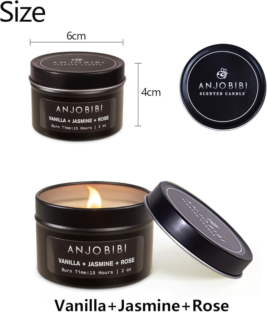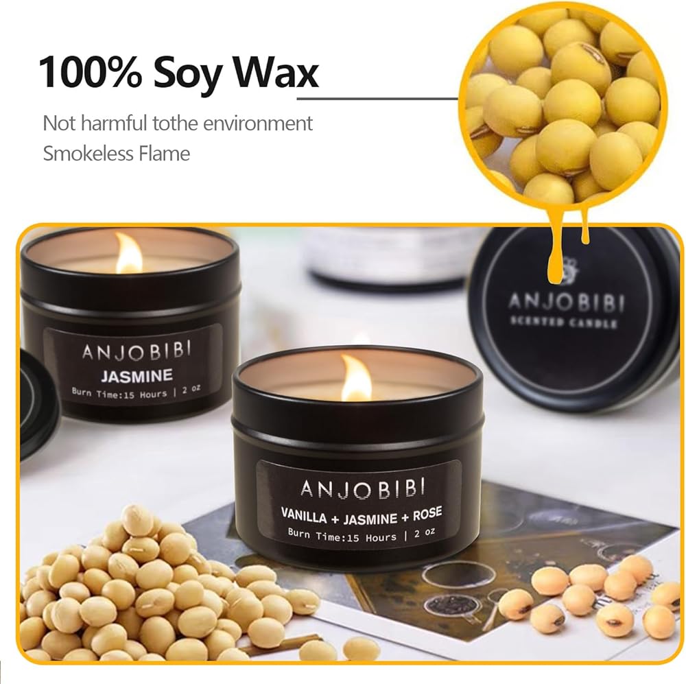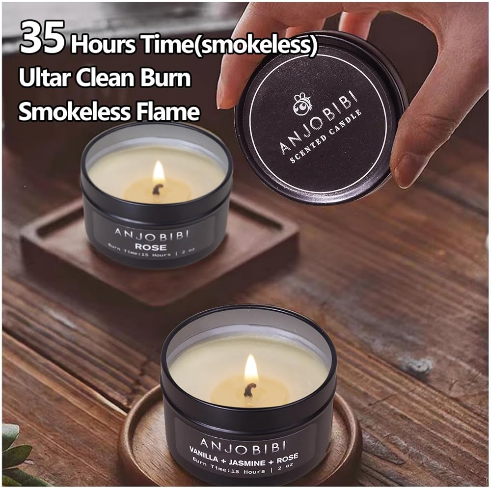 هدايا الشموع المعطرة بالفانيليا + الياسمين + الورد للنساء (عبوة من قطعتين) - 2 أونصة - شمعة تدوم طويلاً لمدة 15 ساعة، طبيعية بالكامل، شموع الصويا، تهدئ