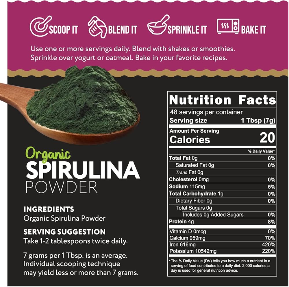Our USDA certified organic spirulina powder is the perfect way to add a nutrient-rich superfood to your diet, our powder is non-irradiated, untreated by heat only