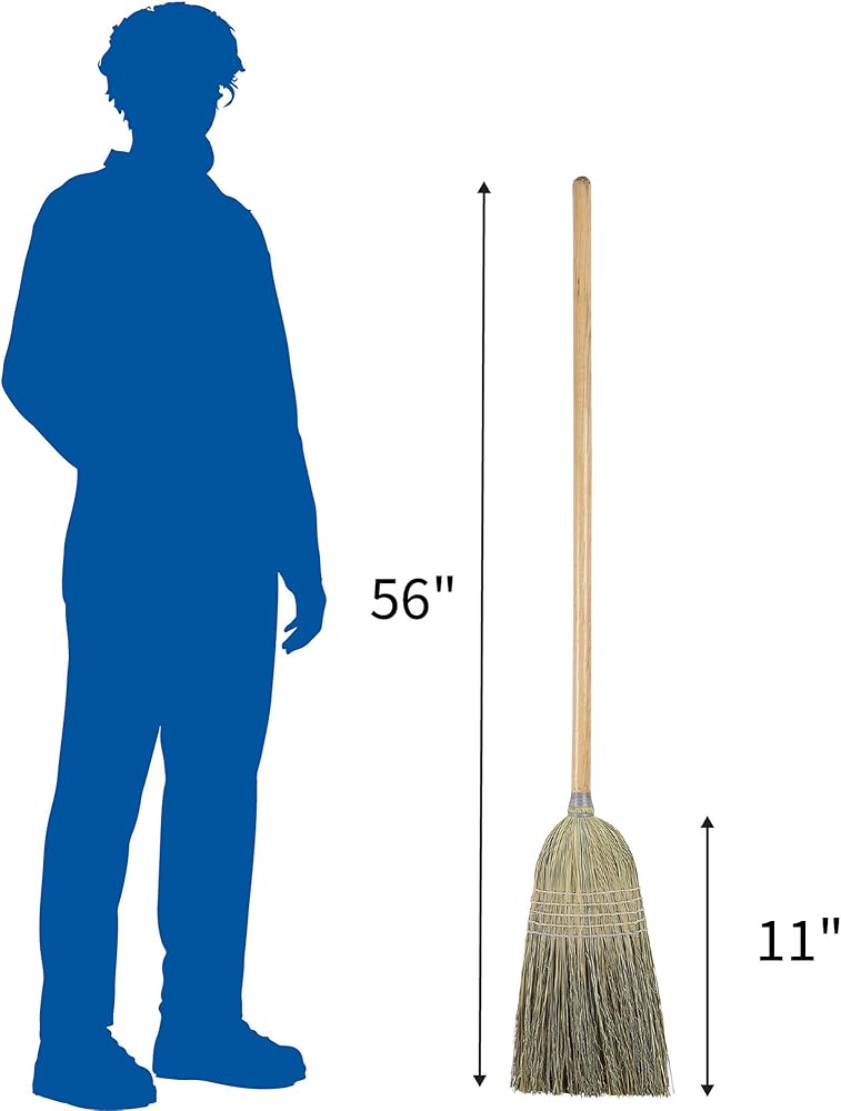 Janitor lobby blend broom is made with natural fibers for durable long life and efficient sweeping. Double-stitched, nylon cord, bound fibers are wire-wrapped onto a 56" wood handle.