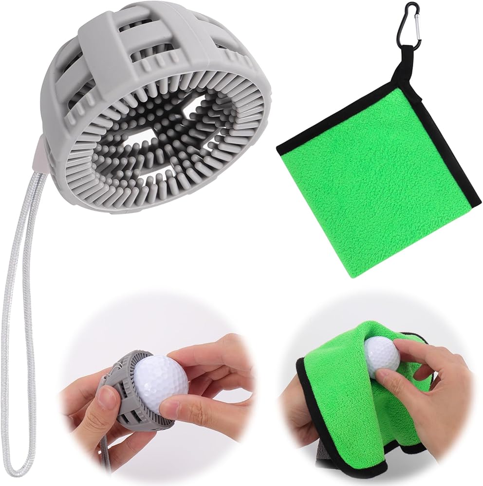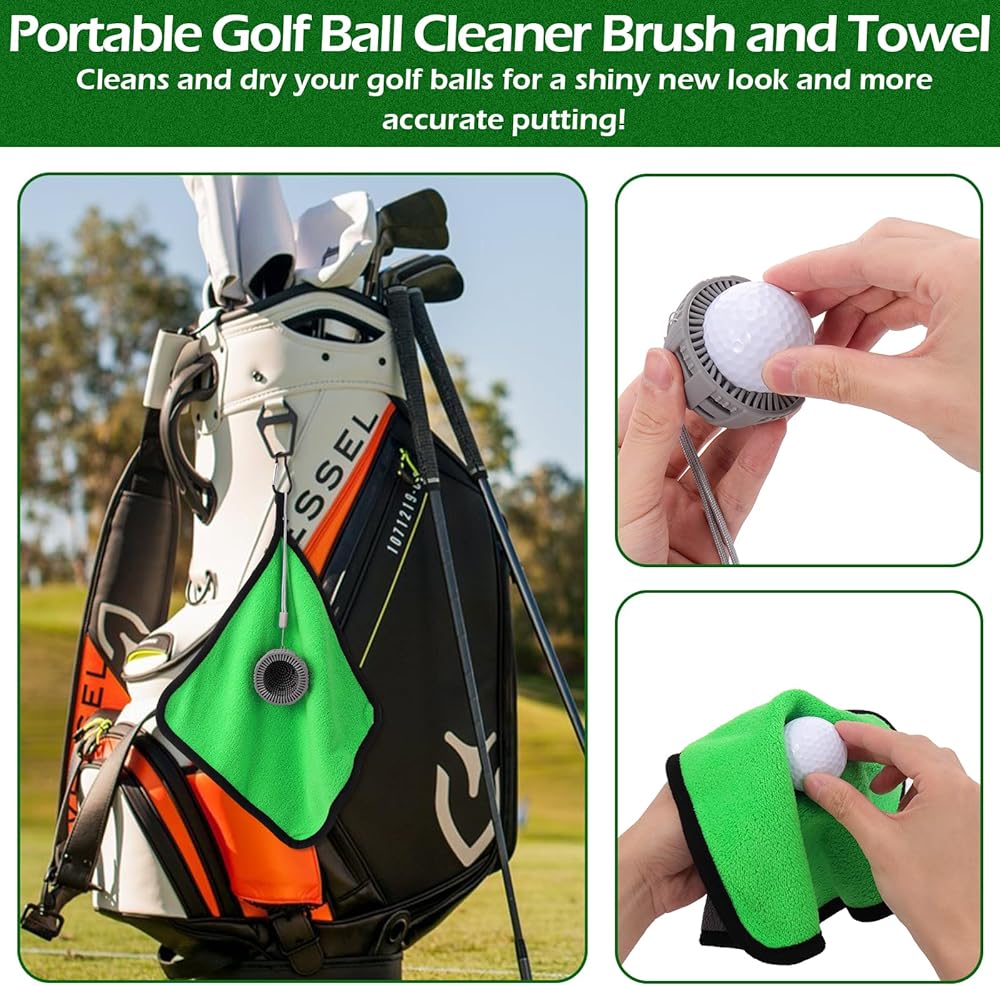 Portable Golf Ball Cleaner Brush with Golf Towel,Golf Ball Washer Brush for Golf Bag,Golf Ball Cleaning Gadgets Accessories Kit,Best Golf Gifts for Men&Women,Golfers,Fathers