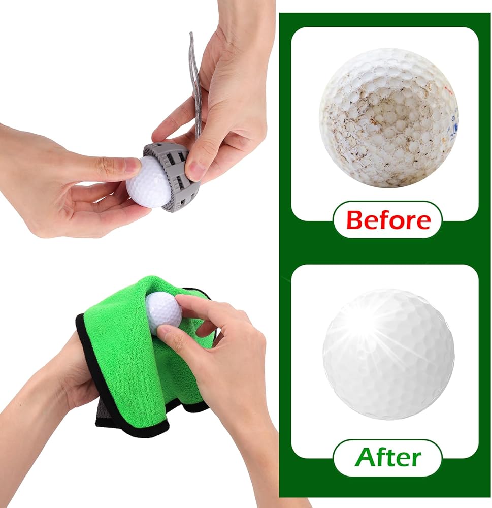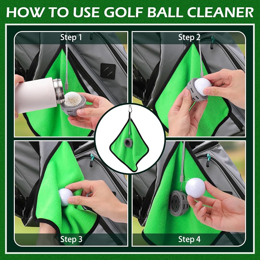 Easy to Clean: Simply place a dirty golf ball in the brush, add a little water and detergent, spin for a few moments, and thoroughly clean the surface of the golf ball of stains, residue, and dirt. Microfibre golf towel for wiping down wet golf balls, so you can hit a clean ball every time you tee off, fly further and push straighter.