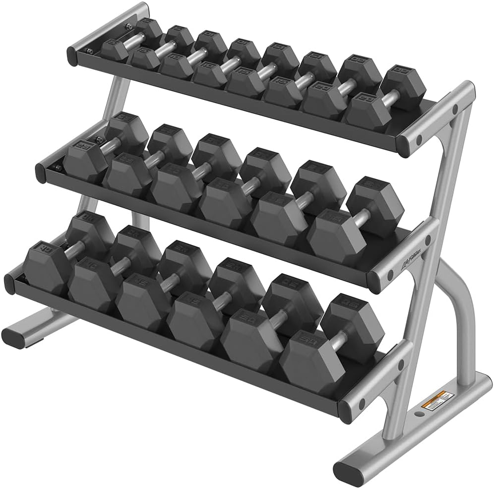 These rubber HEX dumbbells deliver the perfect balance of quality and price to any athlete. They are overmolded with heavy-duty rubber, have tapered handles and large weight numbers to make them accessible and hassle-free for everyone.