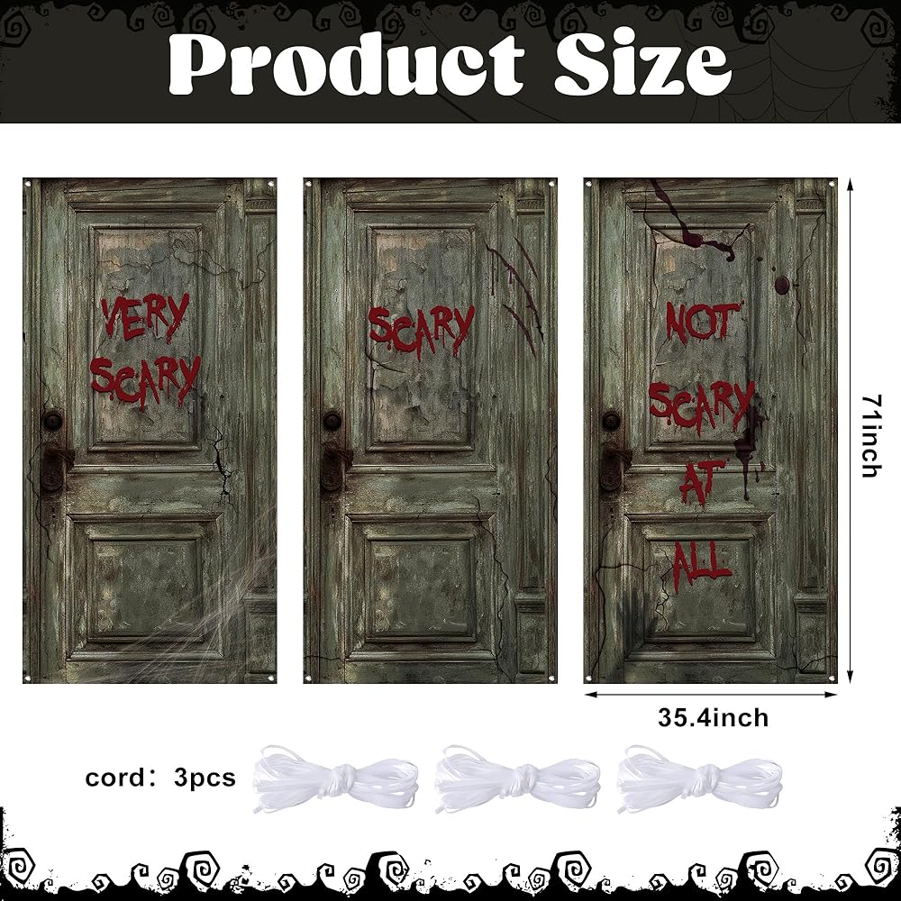 Watayo 3 Creepy Panel Door Scene Setters- 71" x 35.4" Each Halloween Wall Decor Scene Setters Decoration Kit- Horrible Theme Door Backdrop for Halloween Party & Movie Night (Pack of 3)