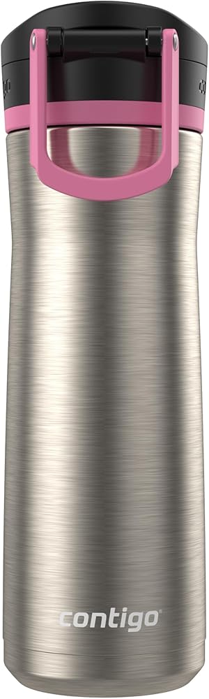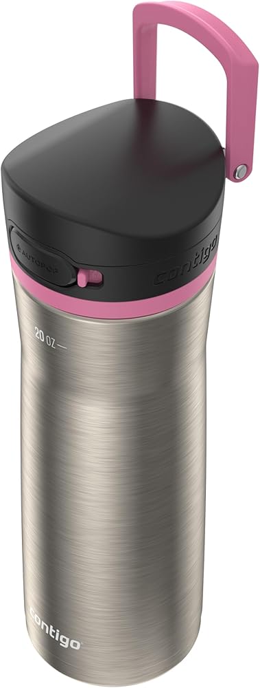 Pop, sip, and click your way to better hydration. The AUTOPOP Stainless Steel Water Bottle features a wide mouthpiece for convenient on-the-go one-handed drinking in between all of the tasks on your to-do list. Whether you're working out or working at your desk, the double-wall vacuum-insulated stainless steel body keeps drinks cold for 24 hours. When you're done drinking, click the lid back into place to help protect the bottle from dirt and grime, then lock the lid for extra protection. The leakproof design means no spills in your car, on your desk, or wherever you are. Carrying it around is easy with the integrated handle. Both lid and body are top-rack dishwasher-safe for easy cleanups. Fits most cup holders.