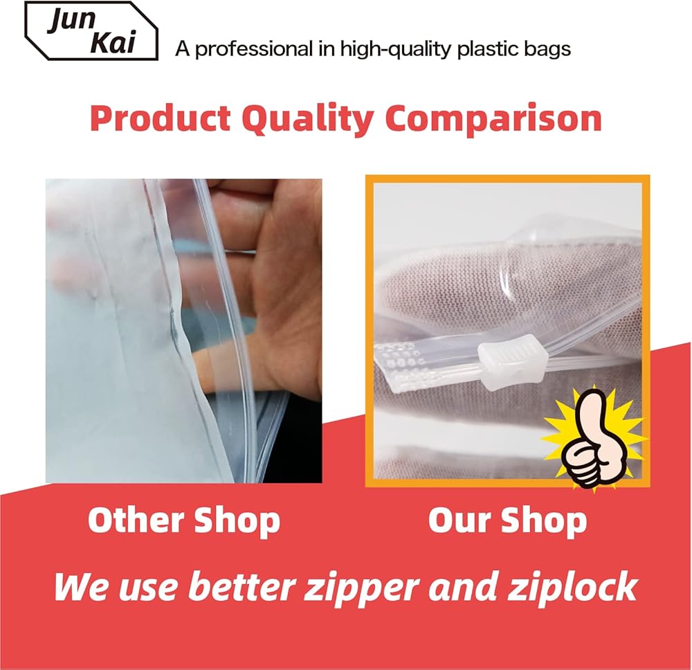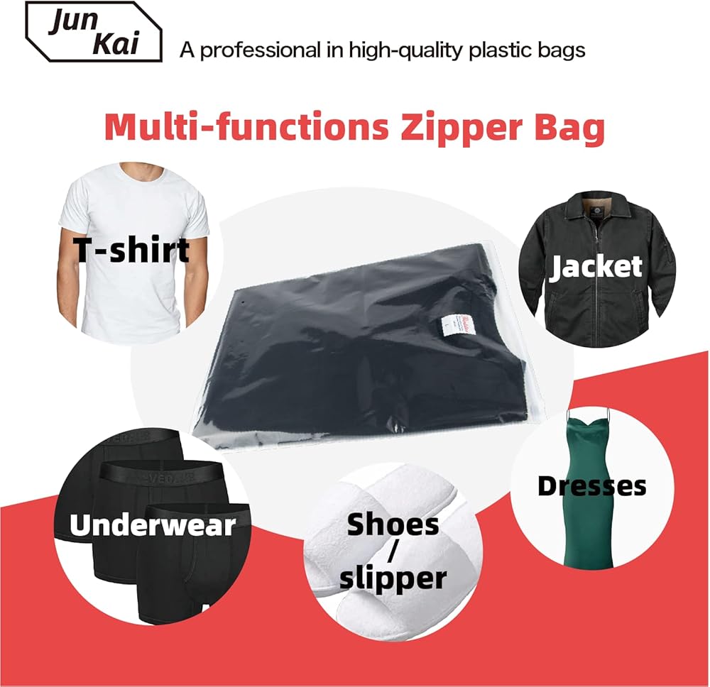 Clothing zipper bag:No compelling reason to squeeze or line up tracks, Solid moving sliding conclusion makes these sacks simple to close, simple to open with a basic special slider structure. Slider conclusion makes it simple for fixing and ensuring the things inside and effectively reusable.