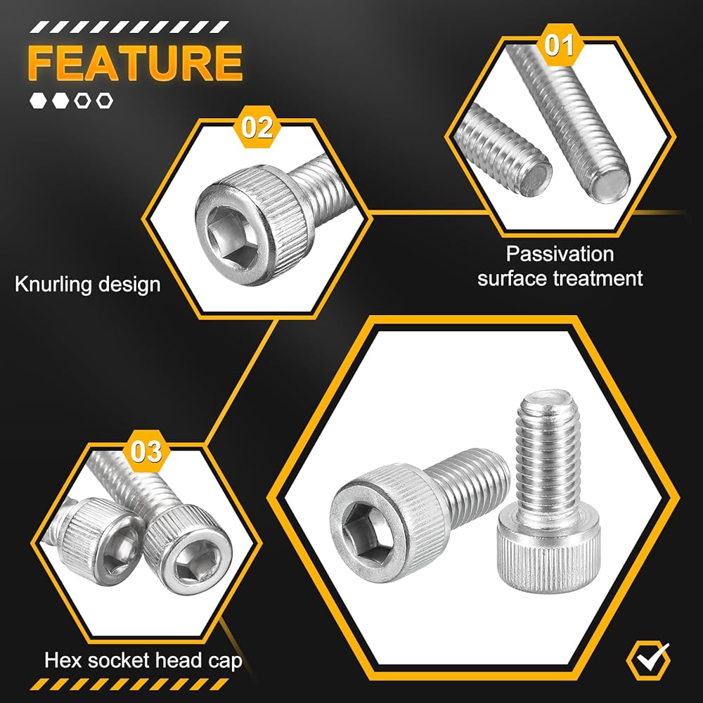 [قوي ومتين]: مصنوعة من الفولاذ المقاوم للصدأ 304، تتميز مسامير غطاء المقبس السداسية بمقاومة للتآكل وتأثير مضاد للصدأ، وليس من السهل تلفها، ويمكن استخدامها لفترة طويلة.