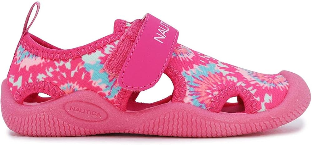 حذاء مائي واقي للأطفال من Nautica، صندل رياضي مغلق من الأمام للأولاد والبنات - Kettle Gulf-Pink Blue Tie Dye مقاس 9