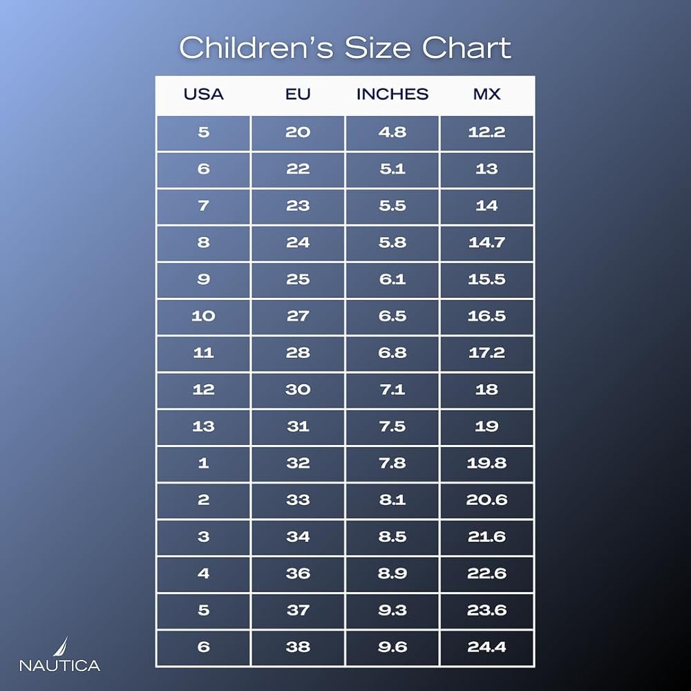 تحويل حجم حذاء الأطفال الصغار (4-7 سنوات)