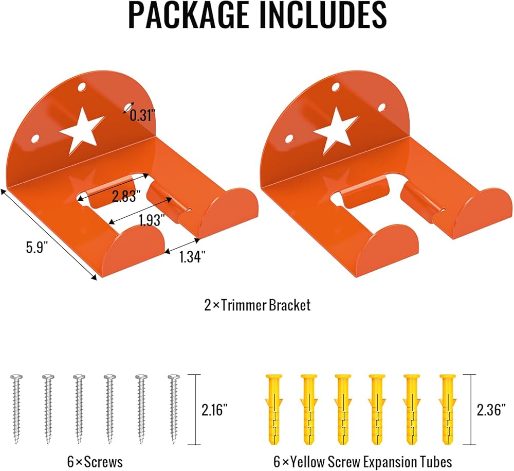 تشتمل العبوة على: رف تشذيب العشب المثبت على الحائط يشتمل على دعامتين و6 براغي و6 أنابيب توسيع لولبية صفراء. نصائح ودية: يرجى الانتباه إلى حجم الرفوف وما إذا كان بإمكانها تعليق أدواتك.
