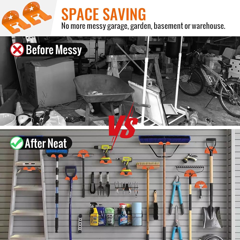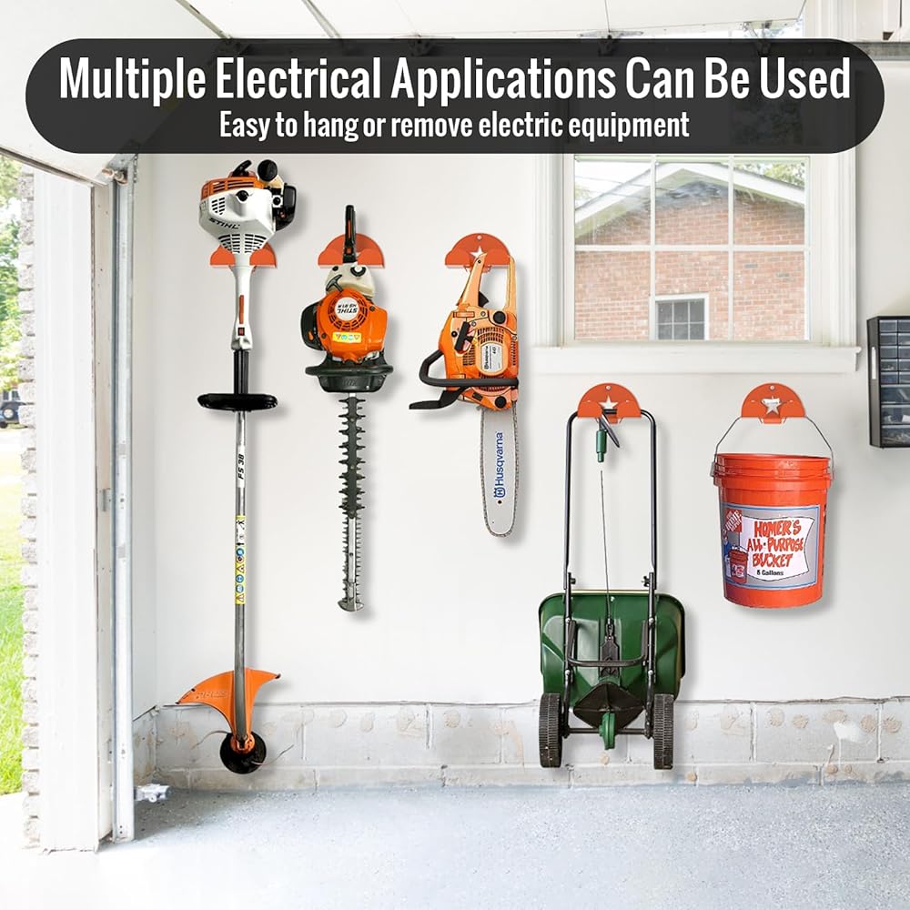 توفير المزيد من المساحة: يعد خطاف الأدوات الكهربائية طريقة تخزين مثالية لأدوات التشذيب، وأدوات تشذيب الأعشاب، والمجارف، والمكابس، والمكانس، والمثاقب، والمعدات الرياضية، والدراجات، والخراطيم، ومجارف الثلج، وأنواع أخرى من أدوات البستنة أو المرآب.