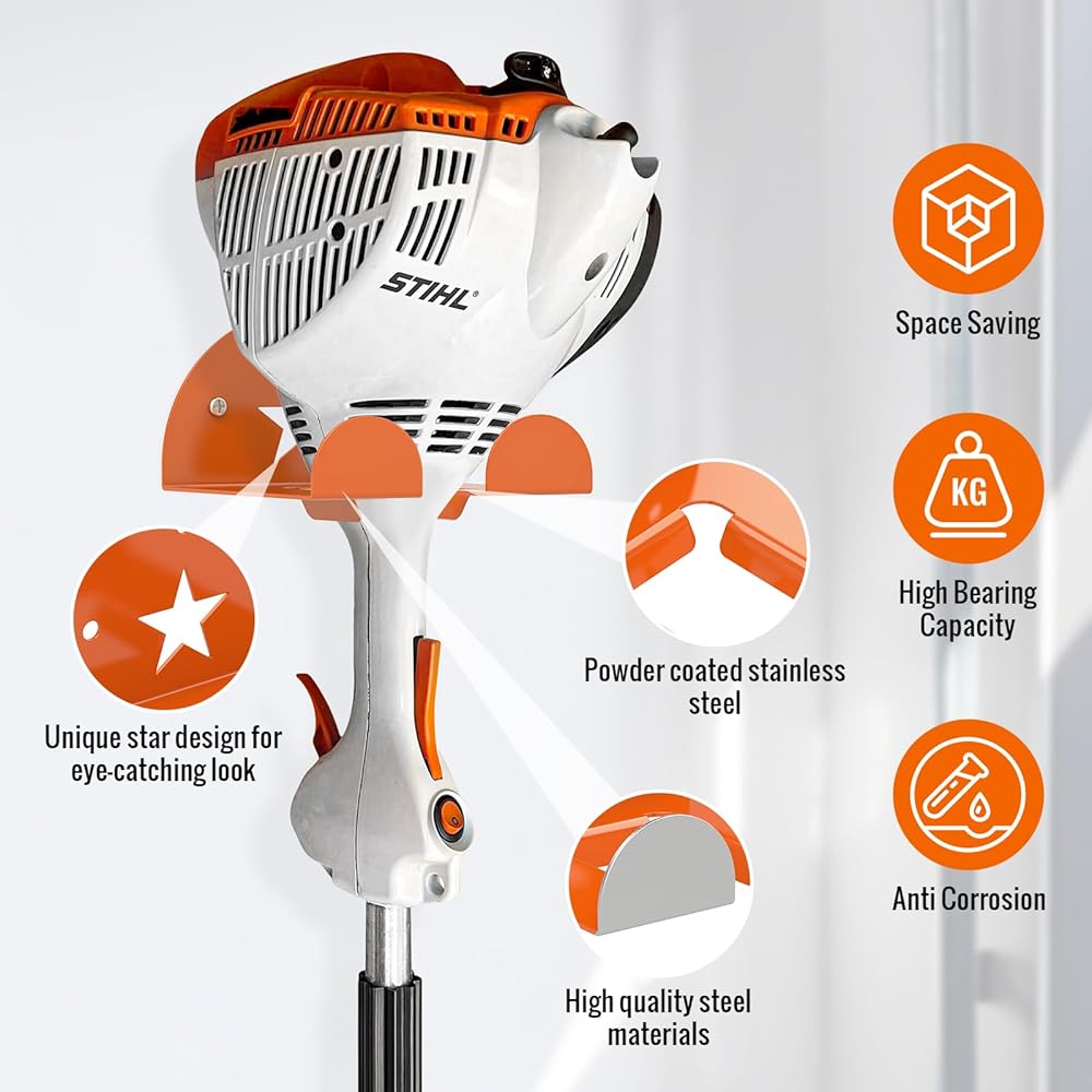 قوية ومتينة: شماعات تشذيب الأعشاب مصنوعة من الفولاذ المقاوم للصدأ السميك، مما يضمن أن تتمتع خطافات تشذيب الحائط بقدرة تحمل ممتازة، وأكثر صلابة واستقرارًا. طلاء مسحوق برتقالي على سطح الرف لمنع الصدأ.