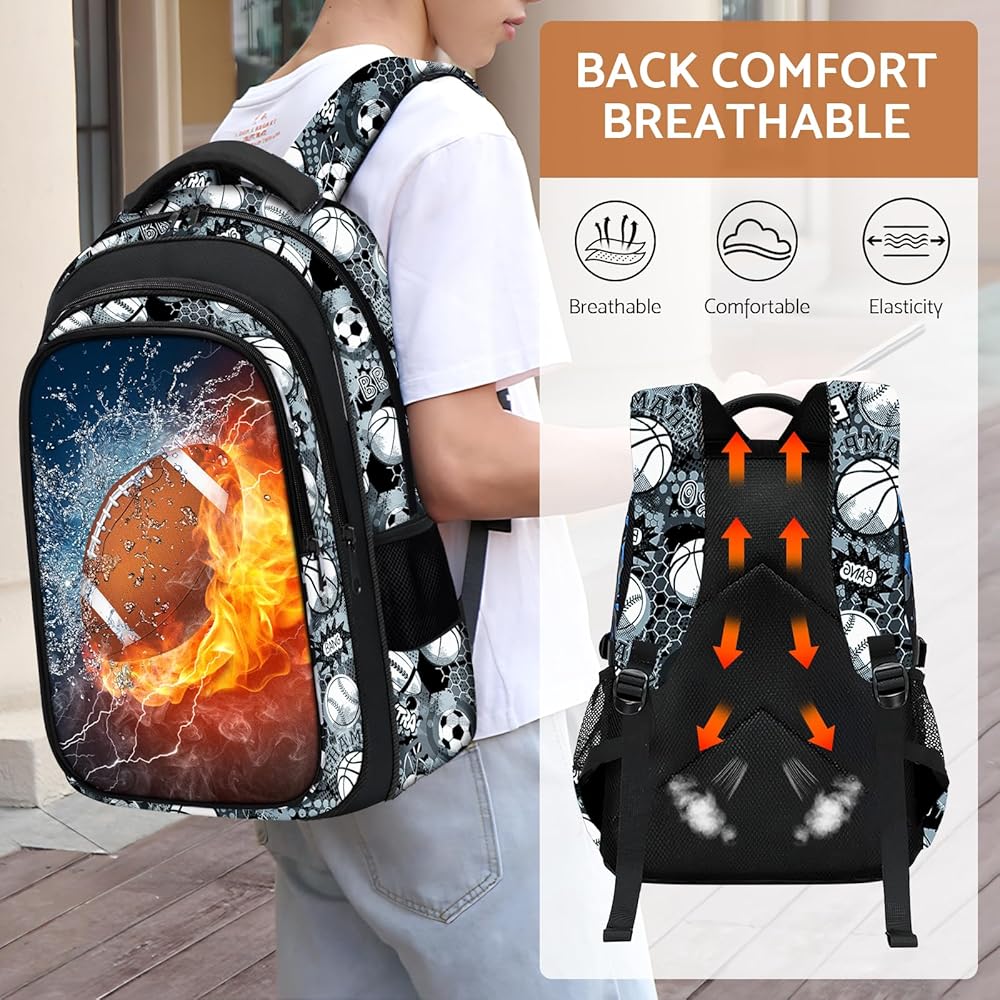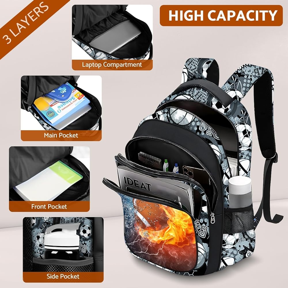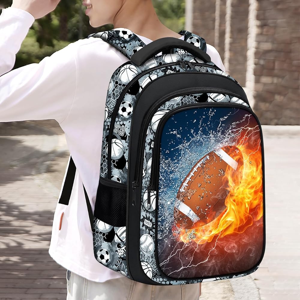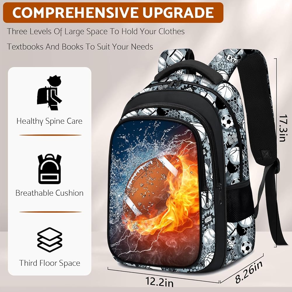 【حجم مثالي لحقيبة الظهر للأولاد】 يبلغ مقاس حقيبة الظهر للأولاد 17.3 بوصة × 8.26 بوصة × 12.2 بوصة (ارتفاع × عرض × طول)، مما يجعلها الحجم المناسب تمامًا للأولاد في المدرسة الابتدائية والمدرسة المتوسطة. طباعة كرة القدم رائعة وملفتة للنظر مما يضمن أن الأطفال سيحبونها تمامًا.