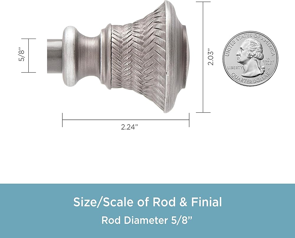 The Kenney Tasha 5/8" Standard Decorative Window Curtain Rod features decorative trumpet finials