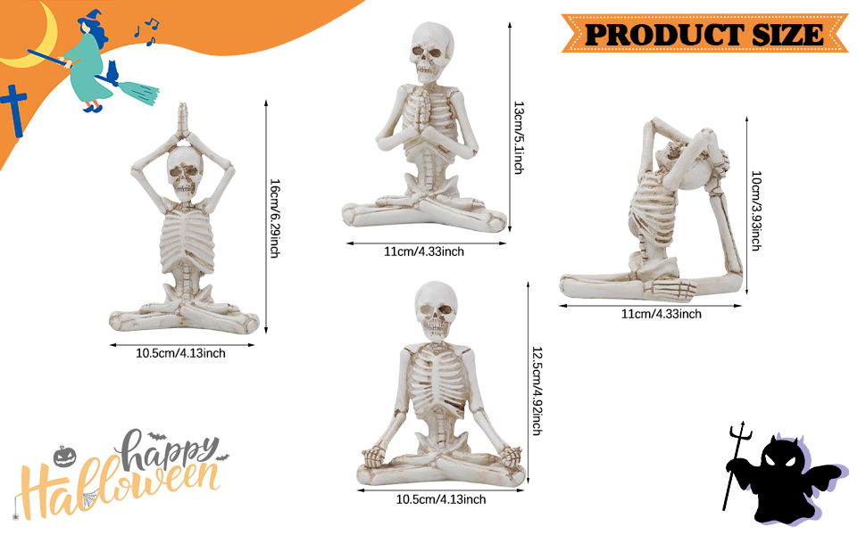 تشمل العبوة - سوف تحصل على 4 قطع من تماثيل اليوجا الهيكلية، كل جمجمة تجلس في وضع مختلف لممارسة تأمل اليوجا، غريبة ولكنها مثيرة للاهتمام. أبعاد منحوتة اليوجا الهيكلية: التأمل: 4.1 طول × 4.9 ارتفاع، الصلاة: 4.3 طول × 5.1 ارتفاع، التمدد: 4.3 طول × 3.9 ارتفاع، العبادة: 4.1 طول × 6.3 ارتفاع. مثالية لأي مساحة تزينها.