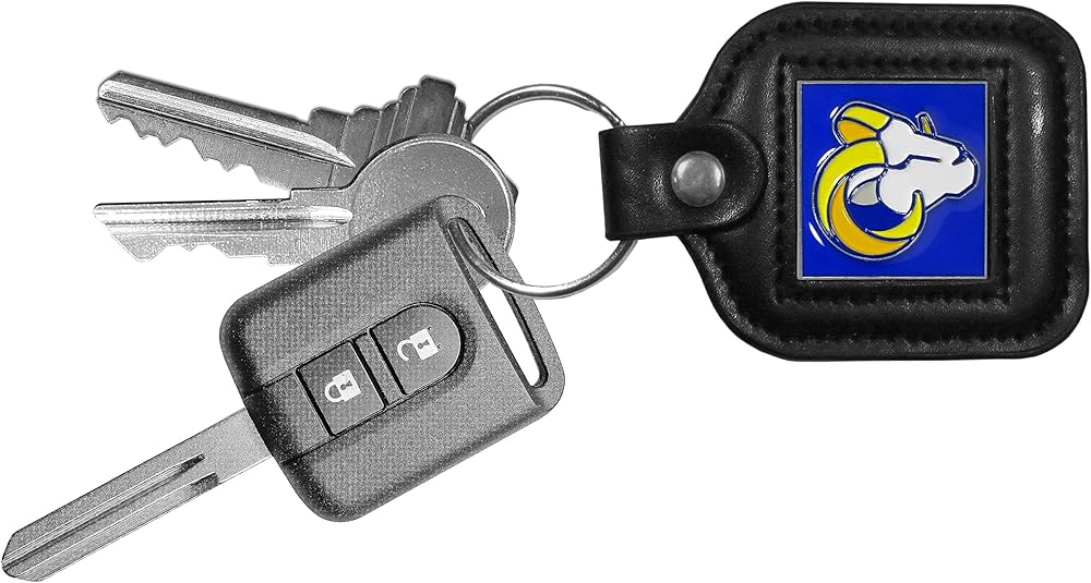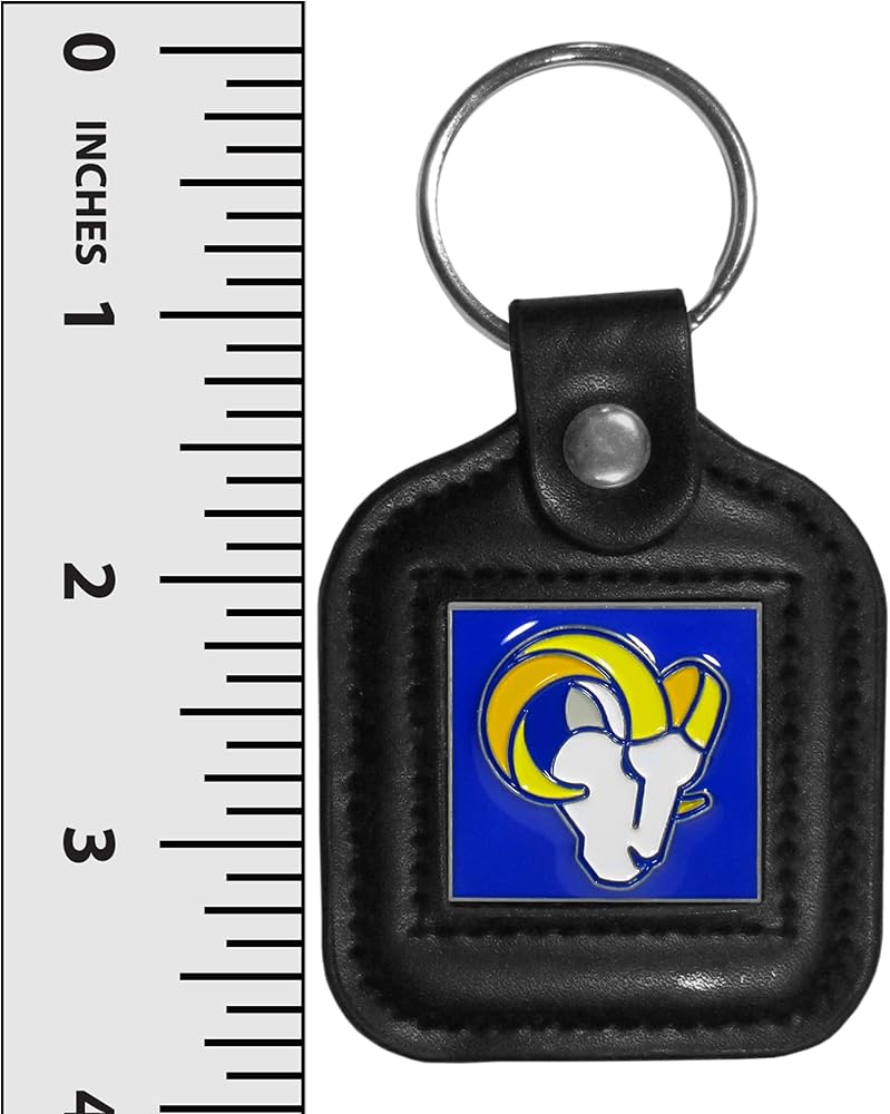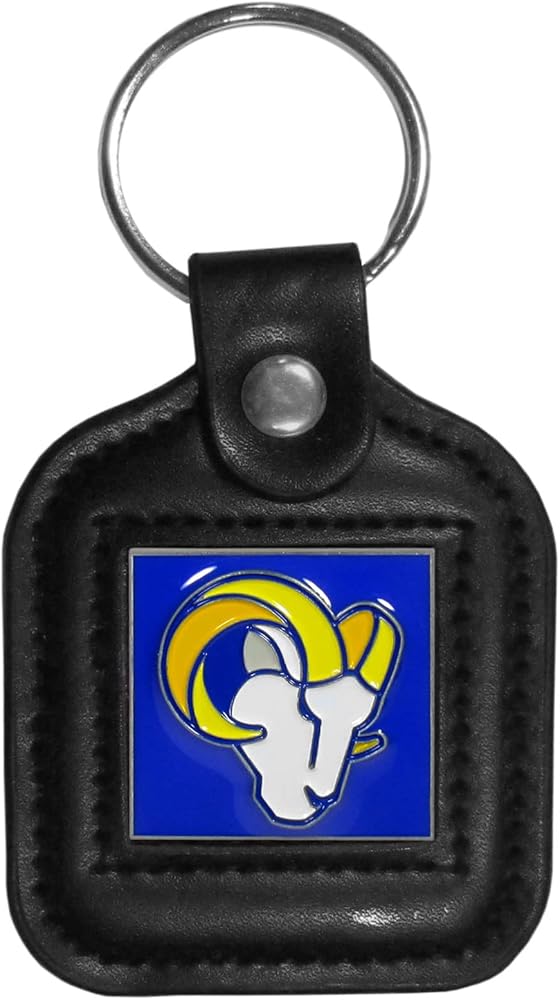 Our high quality NCAA square key chain for the St. Louis Rams had a black key fob with stitched detail and inlaid, metal team emblem with enameled color details.