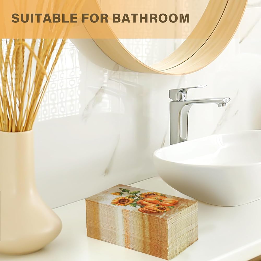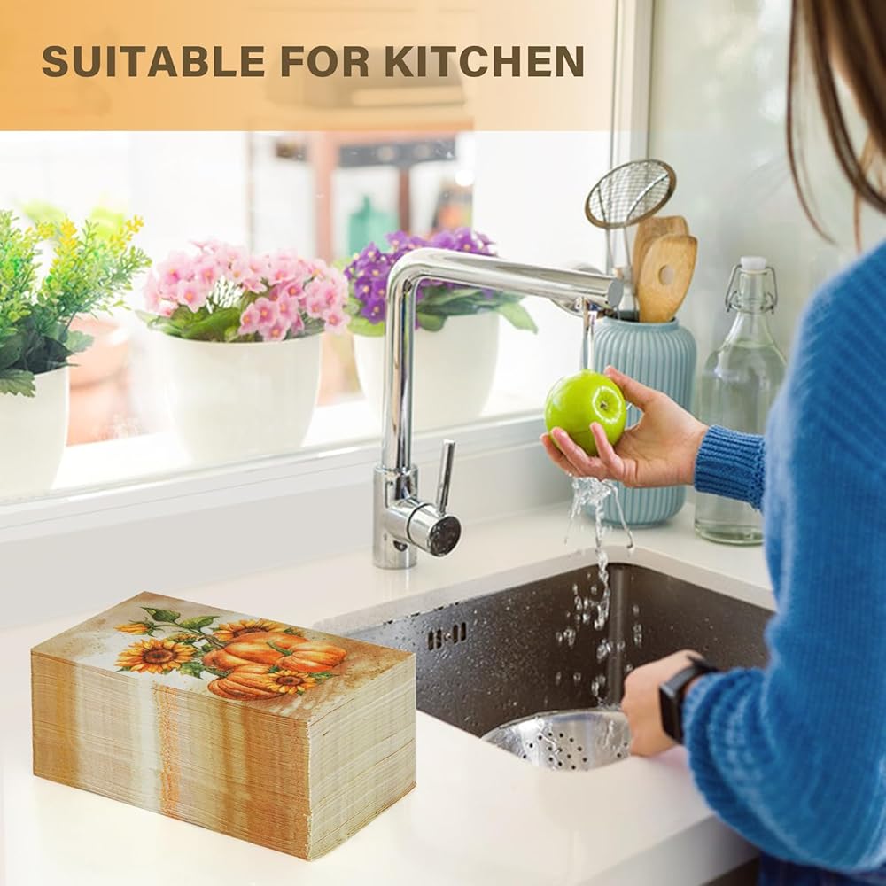 جودة عالية: هذه المناديل الخريفية المكونة من 3 طبقات للاستعمال مرة واحدة مصنوعة من مواد ورقية عالية الجودة، مما يضمن المتانة ومنع التمزق. تتميز بقدرة عالية على الامتصاص وناعمة، مما يجعلها مثالية لمسح اليدين وتنظيف الانسكابات أثناء الحفلات.