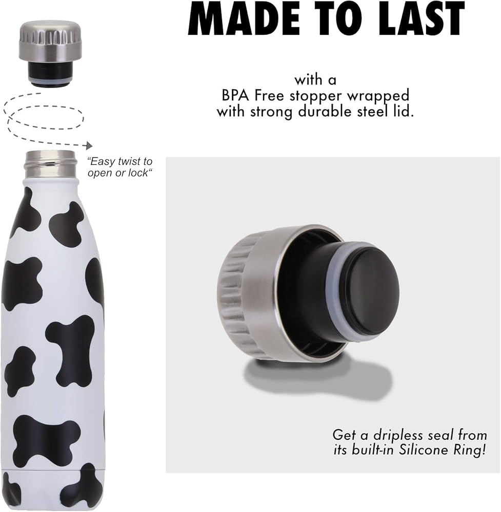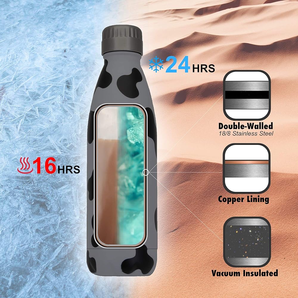 Fashionable design: Finally, thermal insulation bottles come in a range of stylish designs and colors, making them a great accessory for those who want to stand out from the crowd. For instance, the cow print design is a trendy and eye-catching option that can add a touch of fun to any outfit.