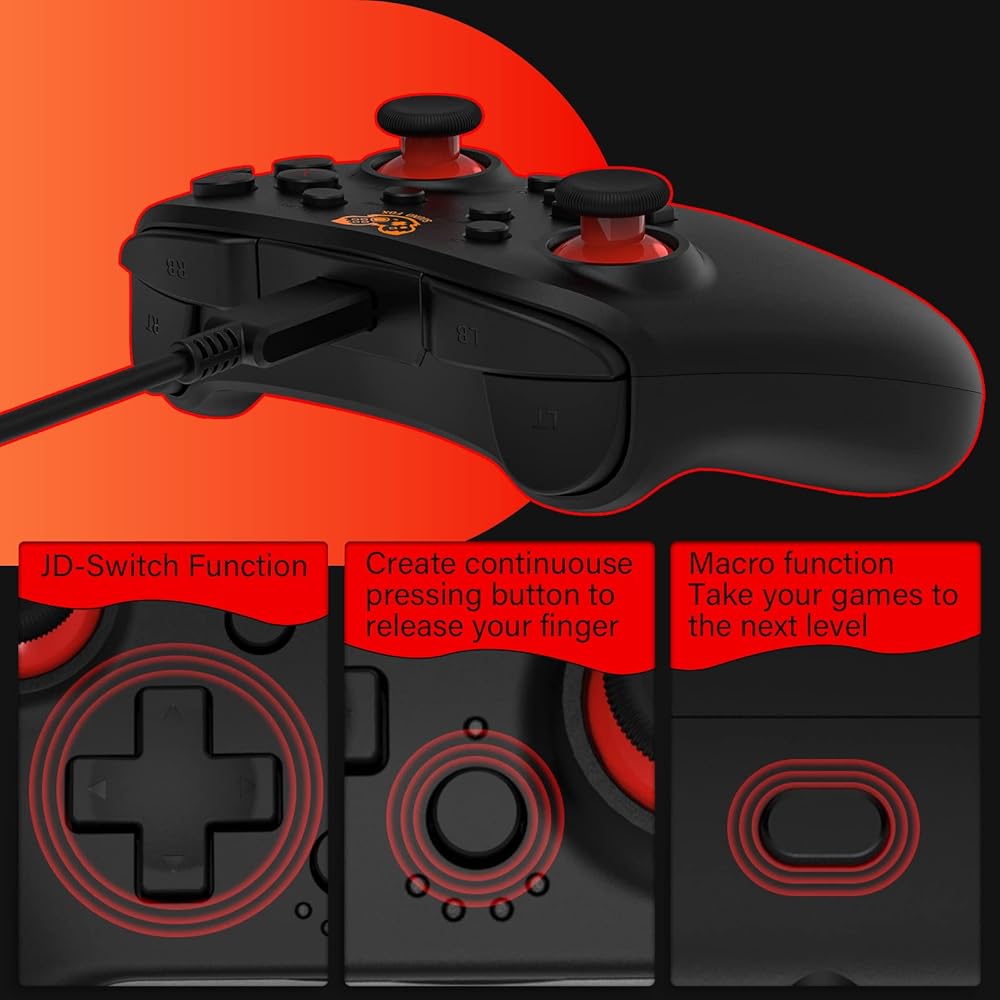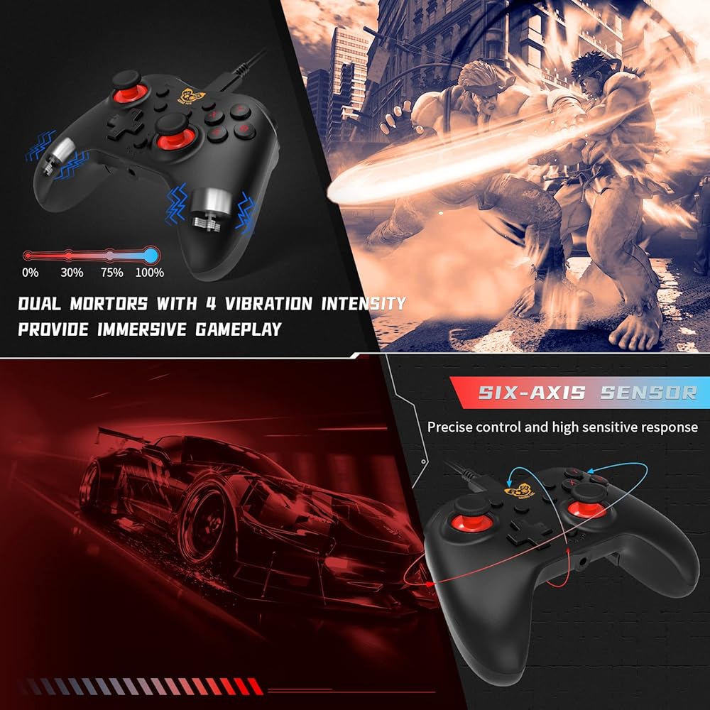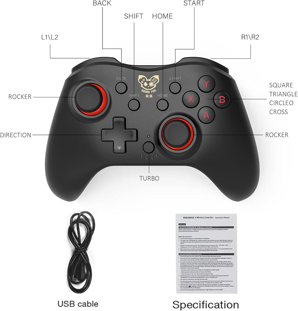 جهاز التحكم السلكي في الألعاب SOUND FOX مع مكبرات صوت مزدوجة الاهتزاز، وظيفة إيقاظ ماكرو توربو للتبديل/الكمبيوتر الشخصي Windows 10/8/7/XP/Steam/Laptop/AndroidTV Box
