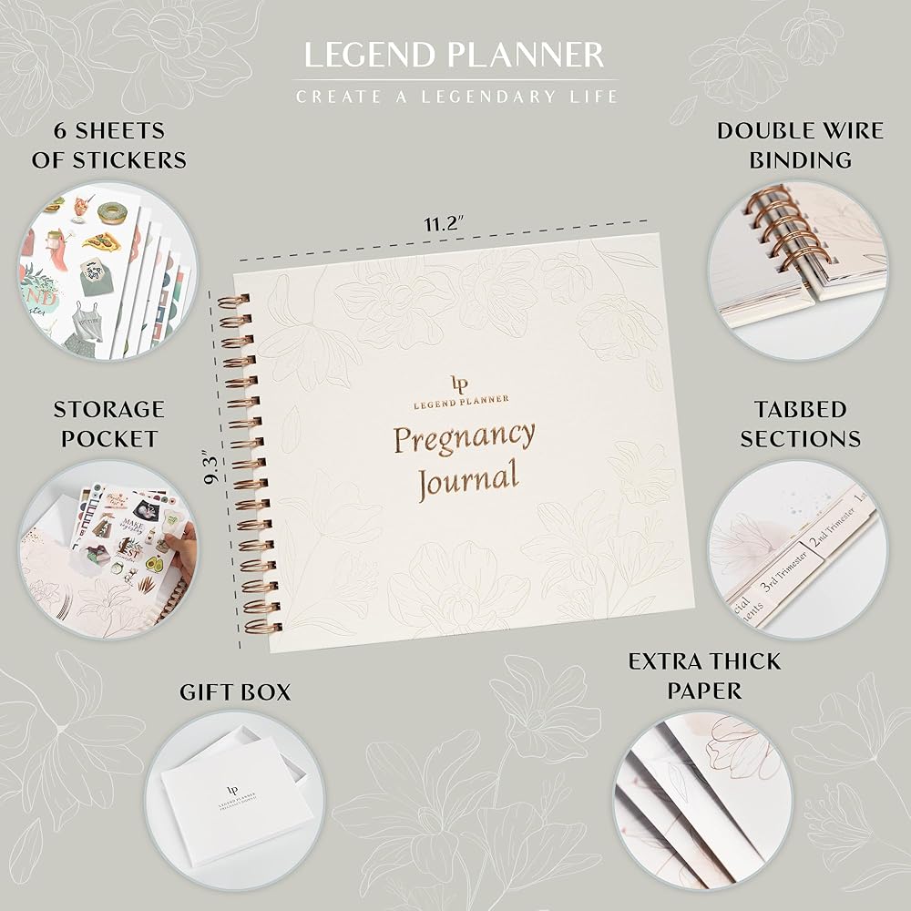 مجلة الحمل الأسطورية وكتاب الذاكرة - مجلة تذكارية لتوثيق ذكريات الحمل والأمهات لأول مرة - مخطط الطفل لتتبع الحمل - غلاف فني، 11.2 بوصة × 9.3 بوصة (أبيض)