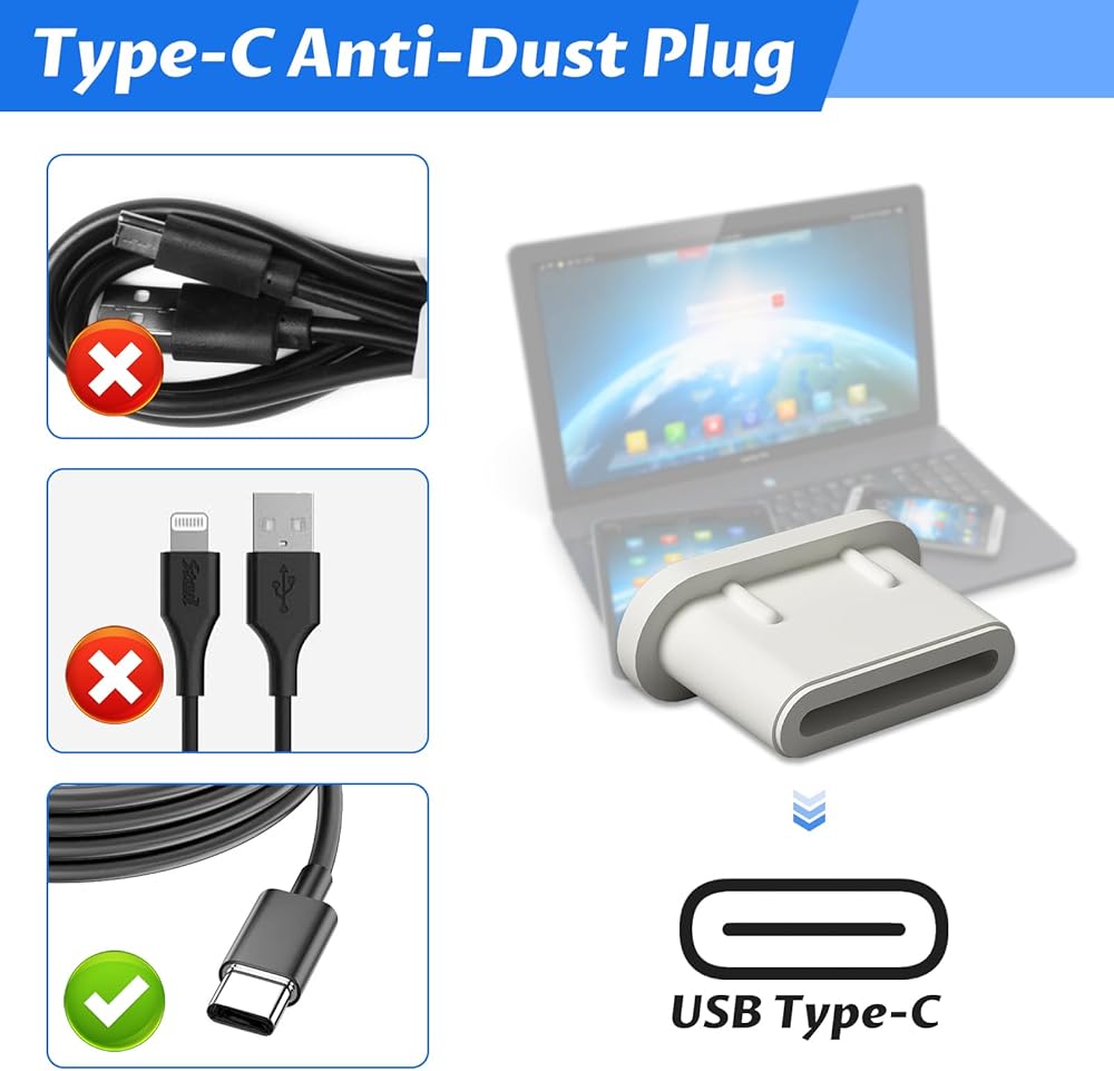 【قابس غبار من النوع C】أغطية الغبار الخاصة بنا مصنوعة من السيليكون عالي الجودة والصديق للبيئة، مما يضمن حماية جهازك والكوكب. لا تقلق بشأن فقدان سدادات الغبار عند تحريك جهازك. تم تصميم هذه المقابس لتناسب الاستخدام اليومي بشكل مريح وآمن.