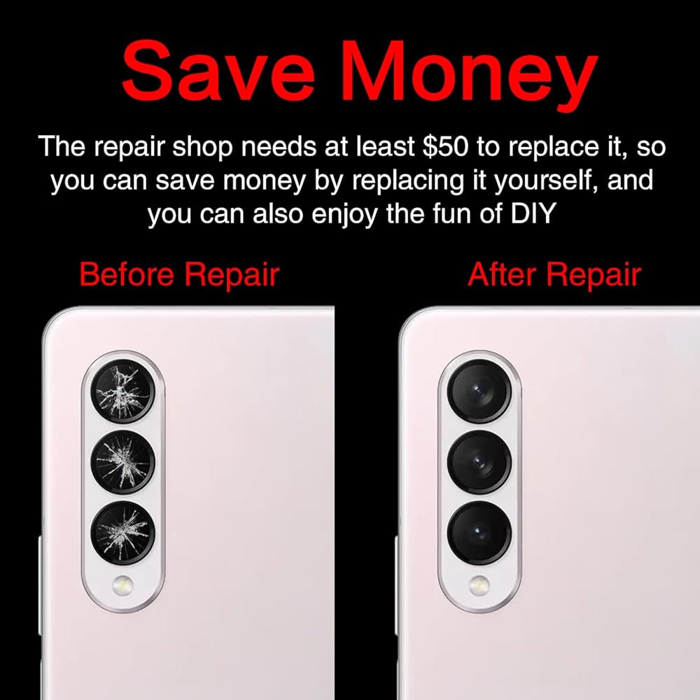 【حماية الهاتف عن طريق استبدال زجاج العدسات】إذا كانت العدسة مكسورة فلن تتمكن من الوصول إلى السعة الكاملة للكاميرا الخاصة بك. ستجعل نظارات Samsung Galaxy Z Fold3 المكسورة جميع صورك ضبابية ولن تتمكن من استخدام الكاميرا. إن كسر عدسات Samsung Galaxy Z Fold3 هو أنها يمكن أن توقف استقرار الكاميرا وأيضًا على المدى الطويل سيكون لديك غبار وجزيئات من النظارات على مستشعر تلك الكاميرات. العدسات المكسورة قد تخدشك أيضًا!