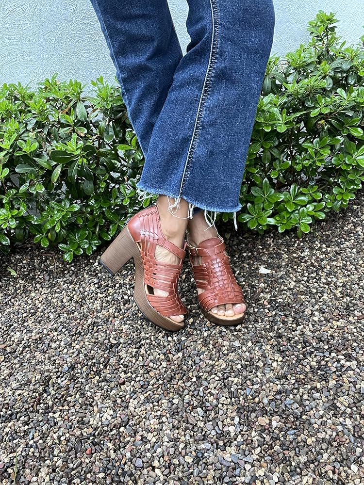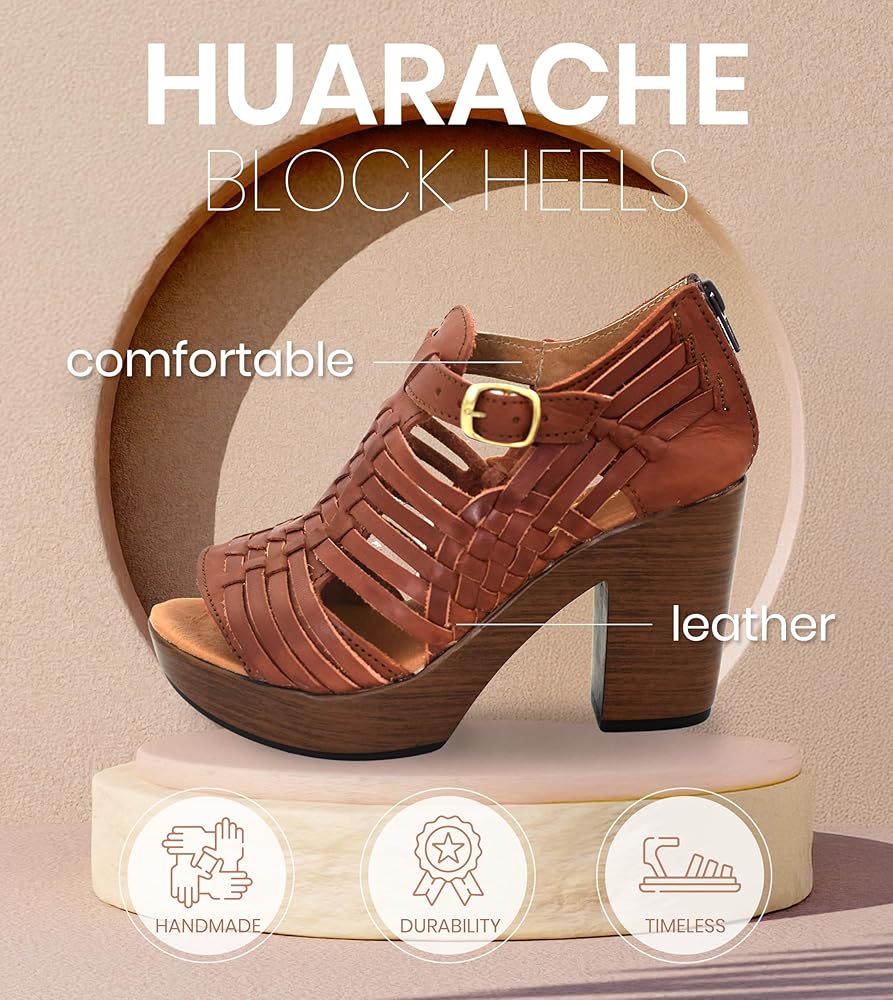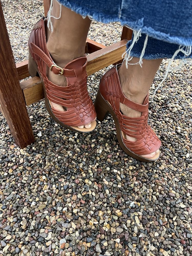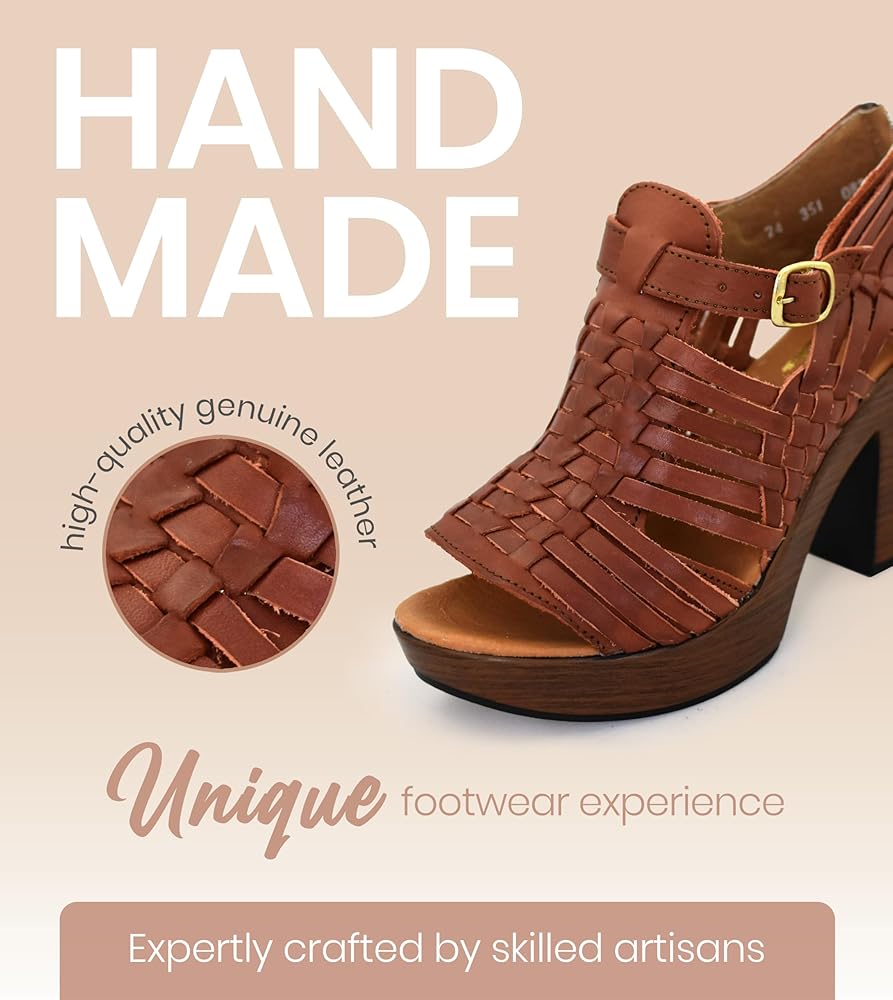 This handcrafted high heel sandal is a sophisticated piece made with care by artisans in Mexico. Crafted from high-quality leather, it is available in various colors including black, shedron, tan, and more vibrant hues that complement any wardrobe. Product Features: Material: 100% genuine leather. Available Colors: Black, shedron, tan, and various other colors. Design: The sandal features an elegant design with interwoven straps, offering a modern and sophisticated look. Heel: Sturdy wooden heel providing stability and comfort. Handcrafted: Each pair is meticulously crafted by Mexican artisans, ensuring exceptional quality and attention to detail. Closure: Adjustable buckle for a secure and personalized fit. Origin: Handcrafted in Mexico, highlighting the heritage and quality of Mexican craftsmanship. Benefits: Style and Comfort: Perfect for both formal and casual occasions, combining style and comfort in one pair. Durability: High-quality leather and artisanal craftsmanship ensure long-lasting wear. Support for Local Artisans: By purchasing this product, you are supporting Mexican artisans and preserving cultural traditions. Usage Recommendations: Ideal for casual and formal events, this sandal can be paired with dresses, skirts, or pants, adding a touch of elegance to any outfit. Product Care: To maintain the leather in optimal condition, clean with a damp cloth and apply specific leather care products periodically.