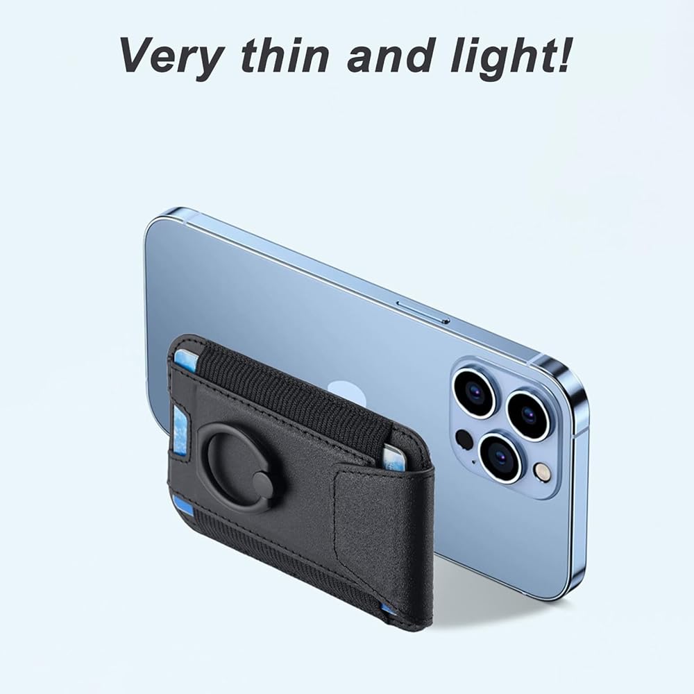 Effortless Card Retrieval - Designed with high-elastic cloths, our magnetic wallet for phone allows for a swift and convenient card access. A gentle push opens the elastic, enabling you to grab your cards instantly, enhancing your efficiency on the go.