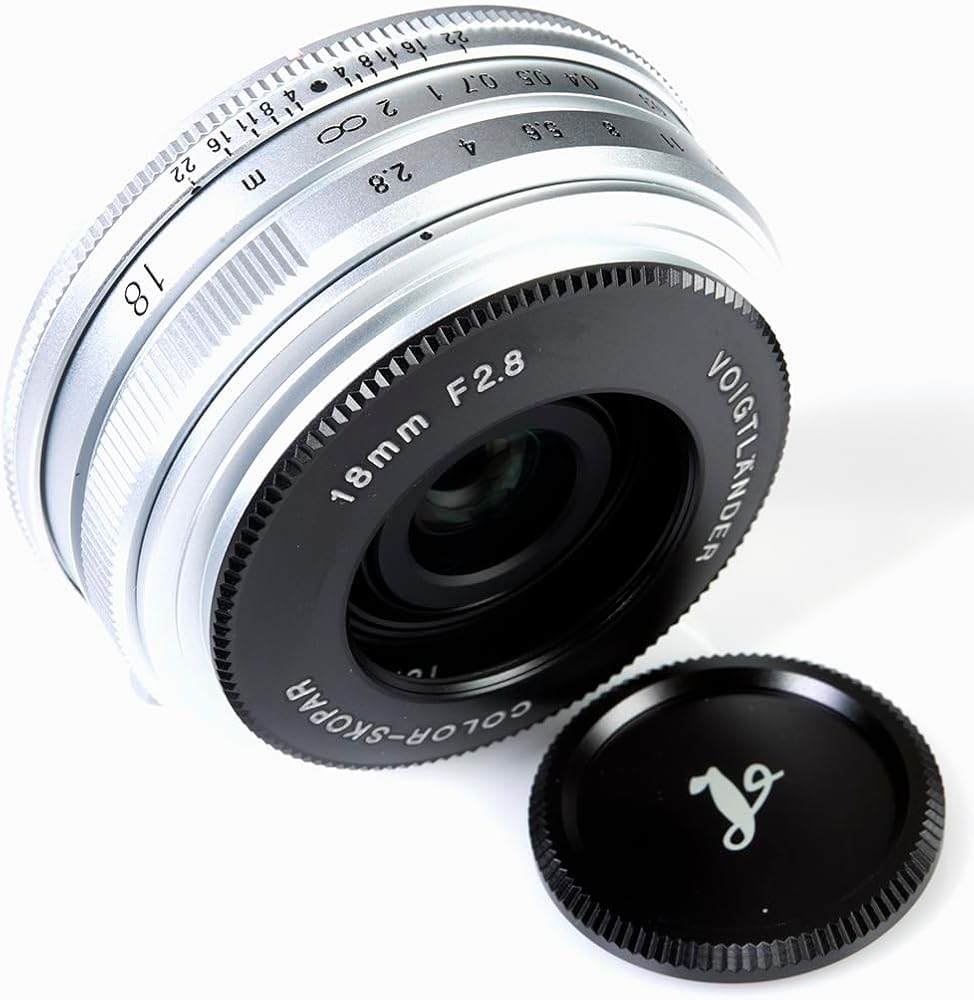 The Voigtlander Fujifilm X mount 18mm F2.8 Color-Skopar is a small compact lens of outstanding handling and optical performance. Its traditional manual focus with 1/3 stop aperture ring offers rangefinder like handling, especially with its quick handling rangefinder style focusing tab. It is chipped for most Fujifilm X cameras. Available in black or silver, close focus is 6.7”. Filter size is 43mm. 10 Aperture blades provide great bokeh. Included are a compact style dome lens hood and lens cap. Field of view is 28mm equivalent on full frame. The Voigtlander 18mm f2.8 is the perfect companion for the equally compact Voigtlander X 27mm f2 Ultron