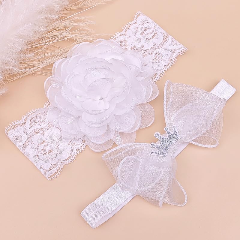 Exquisite Floral Design: These white lace baptism headbands feature delicate flower accents, adding a touch of lovely and charming to any outfit to your baby