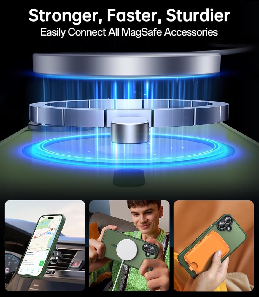 ENHANCED MAGSAFE COMPATIBILITY & CHARGING: Designed for iPhone 16 Pro Max(6.9 inch), this magnetic case features 38 high-temperature-resistant N52 magnets, boosting magnetic strength by 400% compared to other cases. It aligns perfectly with MagSafe chargers, ensuring a secure connection and faster wireless charging without removing the case. Compatible with all MagSafe accessories, it can be securely attached to magnetic power banks, wallets, car mounts, stands, and ring holders