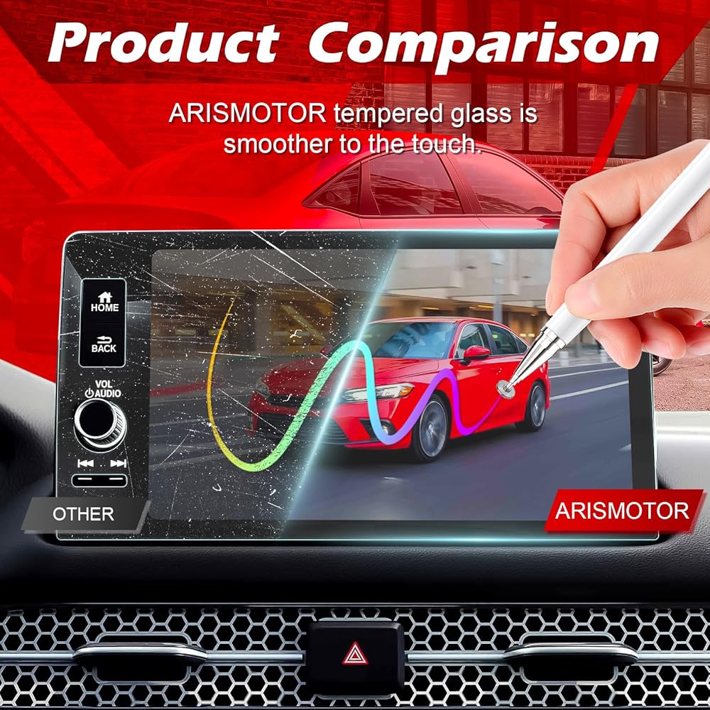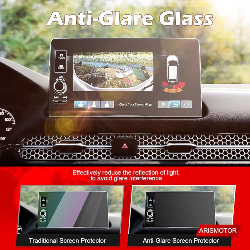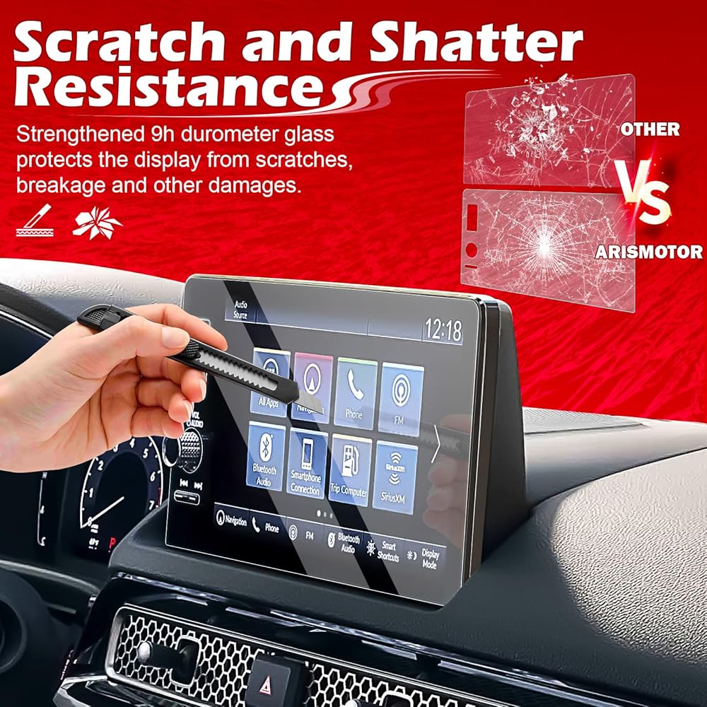 واقي شاشة ARISMOTOR لهاتف Ho-nda Civic 2022-2025/Ho-nda CRV & HRV & Pilot 2023-2025/Acura Integra 2023-2025، غطاء شاشة لمس من الزجاج المقسى مقاس 9 بوصات، ملحقات داخلية، عبوة من قطعة واحدة