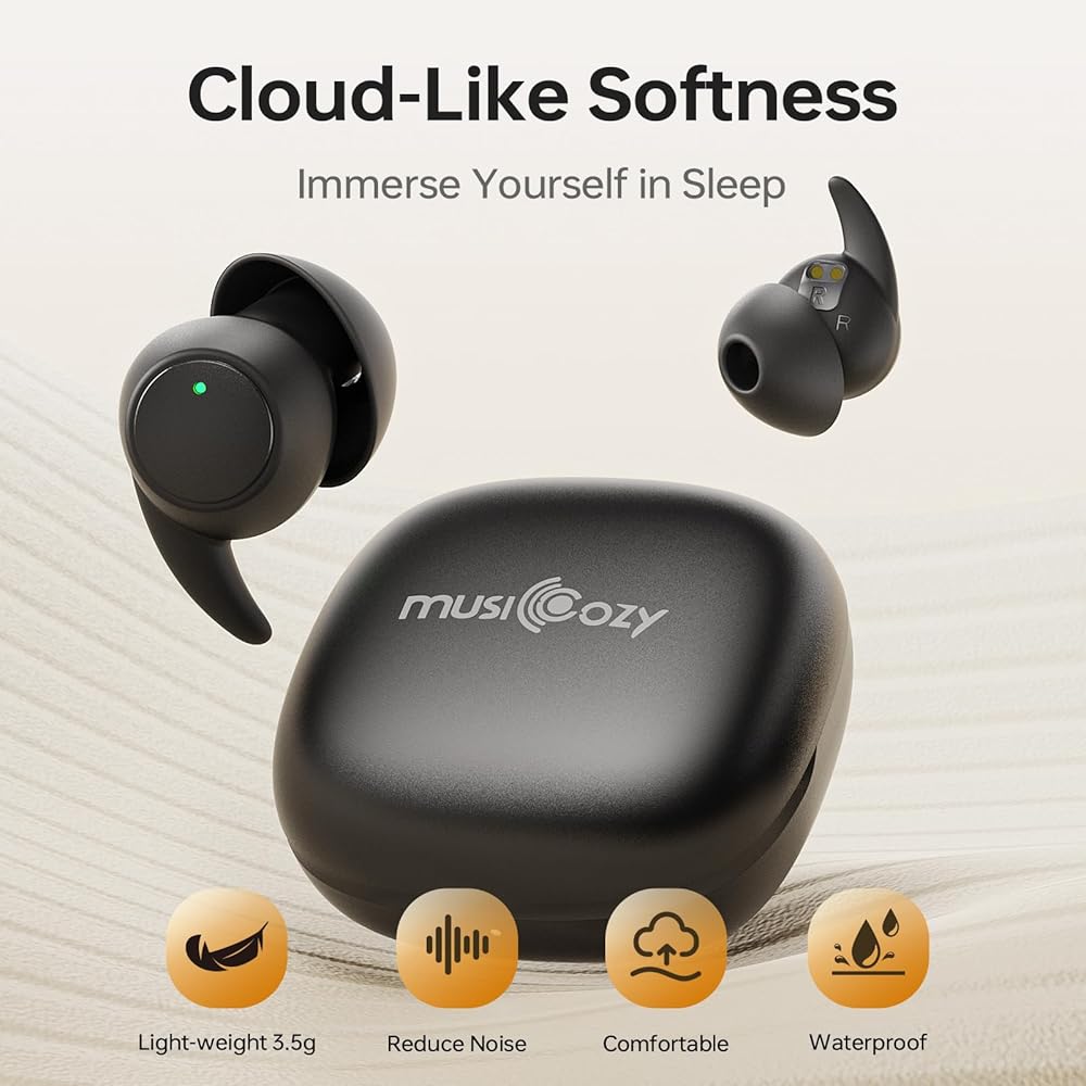 【راحة فائقة وتقليل الضوضاء】 تتميز سماعات الأذن بالسيليكون السائل، مما يجعلها ناعمة بشكل لا يصدق، وصديقة للبشرة، وسهلة التنظيف، مع تقليل الضوضاء المحيطة بشكل فعال. تعبت من المناطق المحيطة الصاخبة؟ جرب سماعات النوم ميوزيكوزي للهروب من الشخير وضجيج المدينة، مما يوفر تجربة نوم مريحة