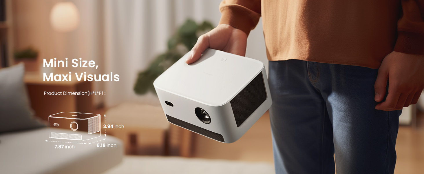 يمكنك المشروع في أي وقت وفي أي مكان: اصطحب جهاز العرض المحمول معك في منزلك وفي الفناء الخلفي والتخييم وغير ذلك الكثير. الحجم الصغير يجعل من السهل تخزينها ونقلها، ويمكن وضعها بشكل مريح في حقيبة الظهر. التصميم خفيف الوزن يجعل من السهل حمله ولن يثقل كاهلك أثناء سفرك.