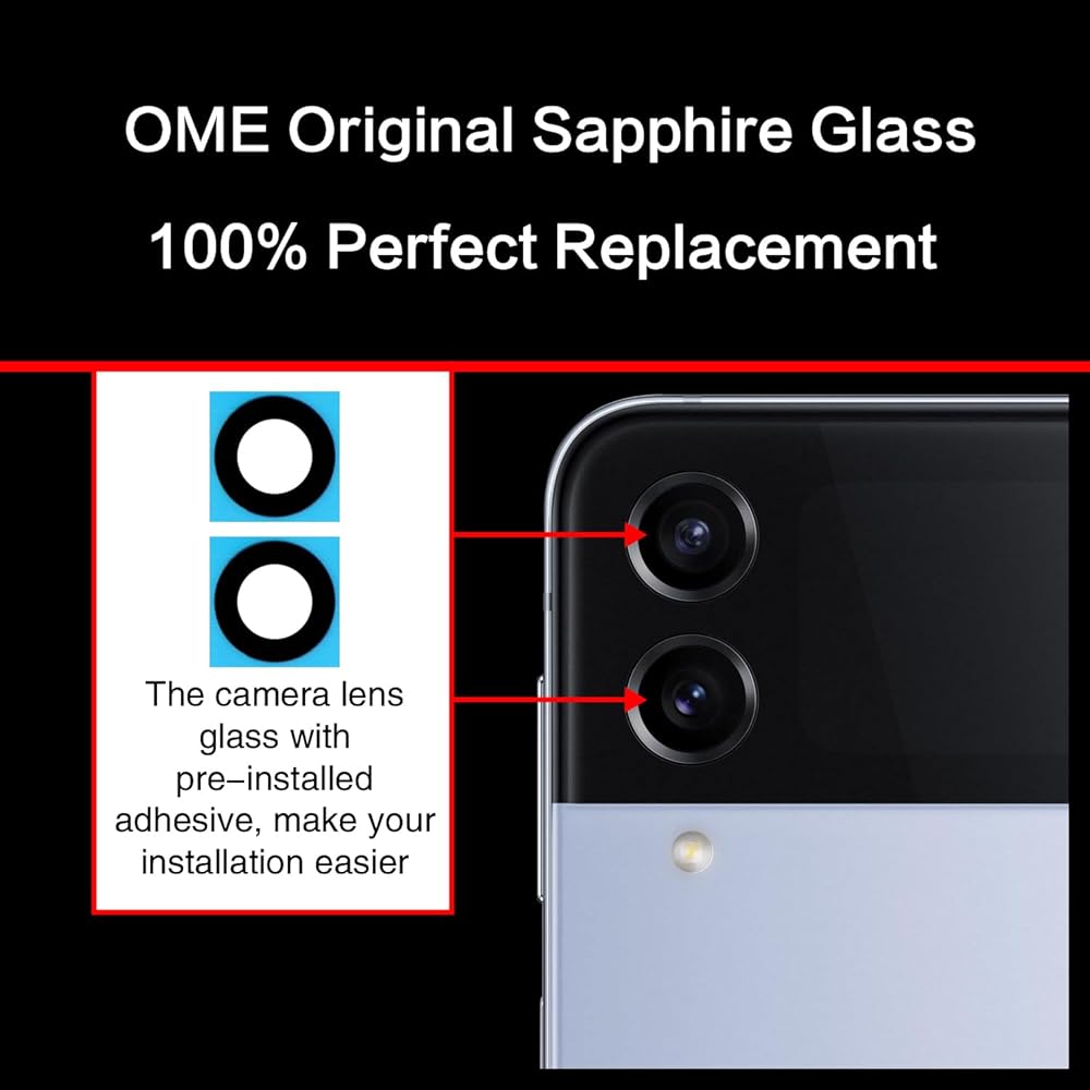 قطعتان من زجاج عدسة الكاميرا الخلفية ASDAWN لهاتف Galaxy Z Flip4 F721 لجميع الحاملات، لاستبدال زجاج عدسة الكاميرا الخلفية Galaxy Flip4 مع فيلم عدسة مجاني + دليل التثبيت + مجموعة أدوات الإصلاح