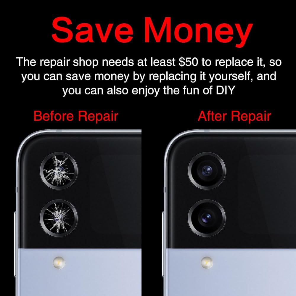 【حماية الهاتف عن طريق استبدال زجاج العدسات】إذا كانت العدسة مكسورة فلن تتمكن من الوصول إلى السعة الكاملة للكاميرا الخاصة بك. ستجعل نظارات Samsung Galaxy Z Flip4 المكسورة جميع صورك ضبابية ولن تتمكن من استخدام الكاميرا. إن كسر عدسات Samsung Galaxy Z Flip4 هو أنها يمكن أن توقف استقرار الكاميرا وأيضًا على المدى الطويل سيكون لديك غبار وجزيئات من النظارات على مستشعر تلك الكاميرات. العدسات المكسورة قد تخدشك أيضًا!