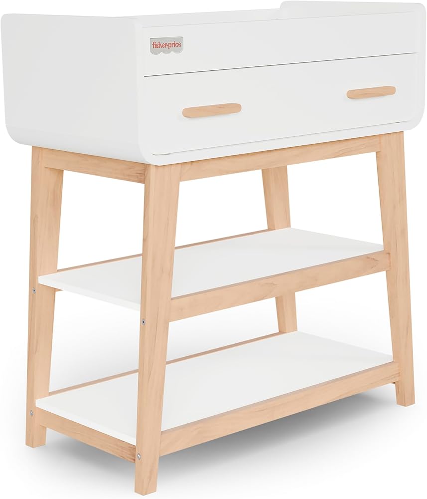 Say goodbye to diaper changing woes and hello to convenience with the Fisher-Price™ Iris/Siesta Changing Table by Dream On Me! Made from durable New Zealand Pine Wood, this changing table is not only sturdy but also easy to maintain. The bottom closed drawer and two open shelves provide ample storage space for all your diapering essentials and more, keeping everything organized and within reach. Safety and functionality are at the heart of our design. The changing table is JPMA & Greenguard Gold certified and meets/exceeds the ASTM & CPSC safety standards. Available in four pleasant variations - Blush Pink, Light Grey, Matte Black Vintage Oak, and Vintage White Oak - each option is carefully crafted to suit your style preferences and nursery décor. Product dimensions are 33.9"L x 18.5"W x 38.4"H, with a weight of 66 Lbs.