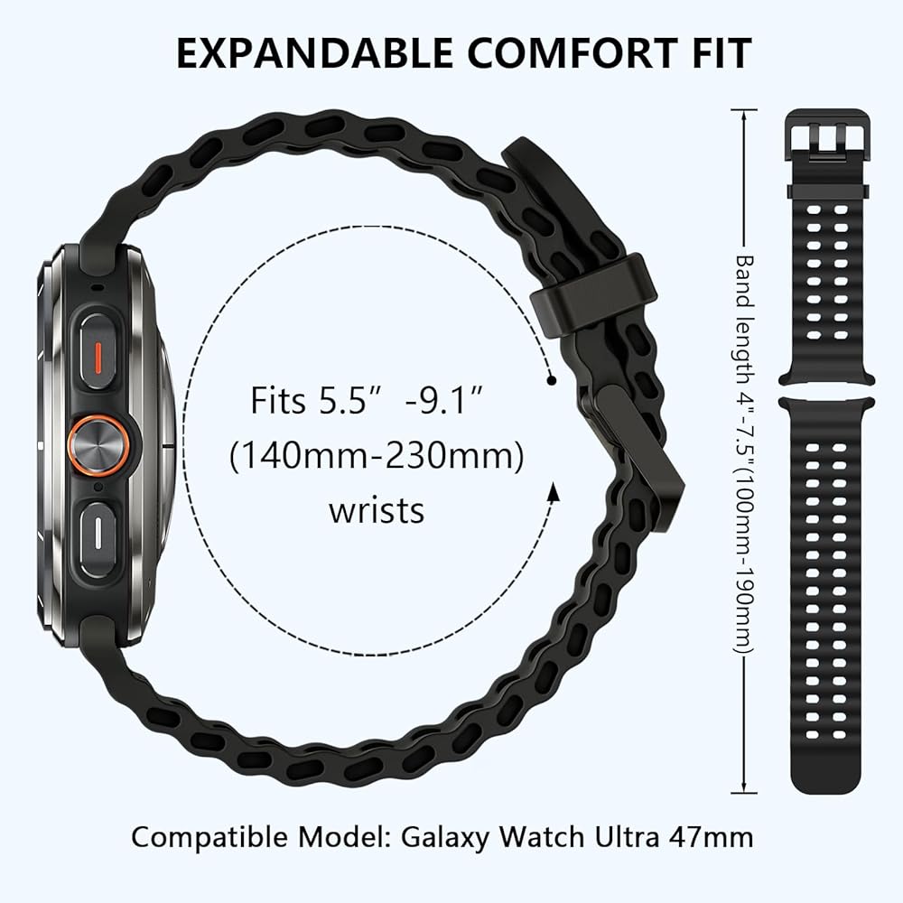 【الموديلات المتوافقة: متوافقة فقط مع ساعة Samsung Galaxy Watch Ultra 47 مم (2024)، مصممة للنساء والرجال. ملحوظة: يرجى التحقق من طراز ساعتك قبل الطلب لتجنب الطراز الخاطئ. يناسب مقاس المعصم من 5.5 إلى 8.7 بوصة (140 مم - 220 مم)