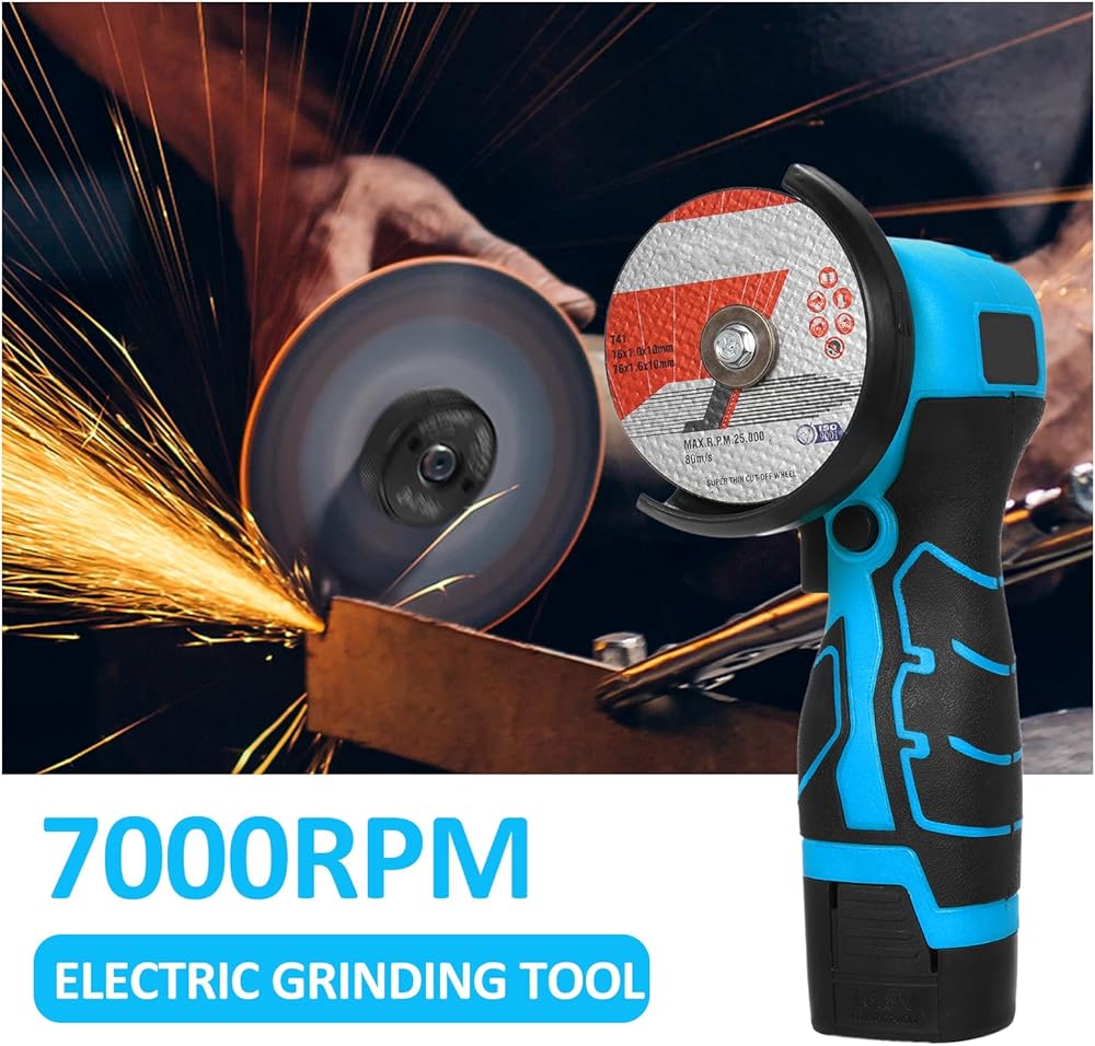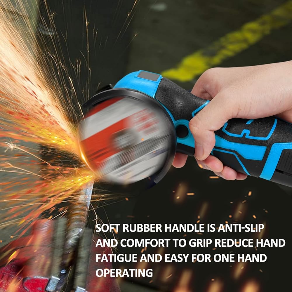 【Powerful/Stable】The electric angle grinder adopts a BLDC motor, which has less noise and vibration and higher efficiency. Two 2000mAh lithium batteries can provide power smoothly and continuously at a speed of 7000rpm, helping you to complete the grinding and cutting work efficiently, saving your time and energy.