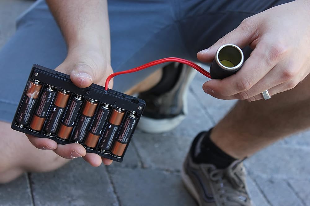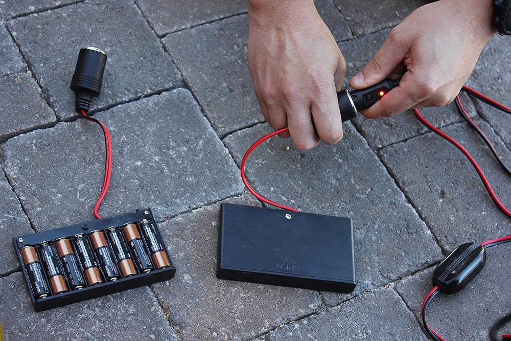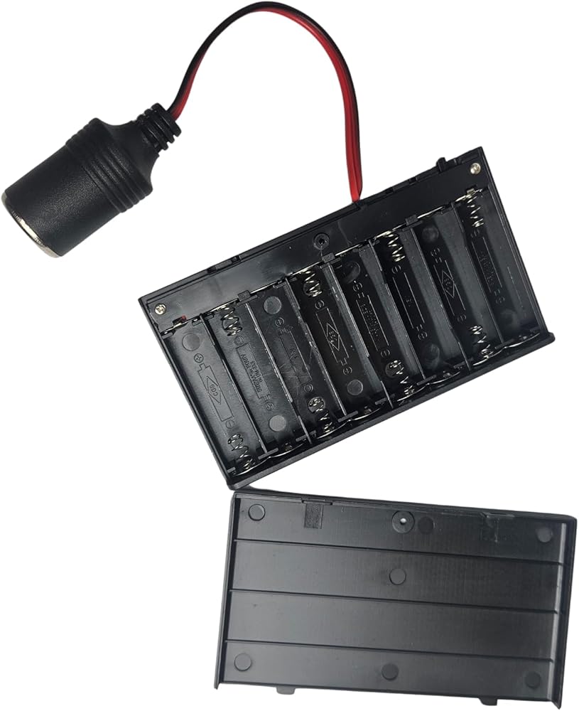 Power Backup: Stay powered up on the go with the 12V battery holder, providing a reliable 12V output. Simply insert 8 AA batteries (not included) for portable power whenever you need it.
