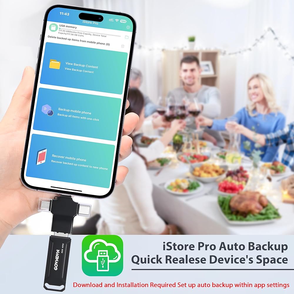 محرك أقراص فلاش iStore Pro Auto Backup Photo Stick 4 في 1 بسعة 256 جيجابايت: مستقبل مع Lightning، USB C، USB 3.0، موصل Micro، واحد لجميع عصا الصور لأجهزة iPad وiPhone والكمبيوتر وAndroid. عصا تخزين صور iPhone بدون جهد لجميع الأجهزة. يلزم تنزيل تطبيق iStore Pro.