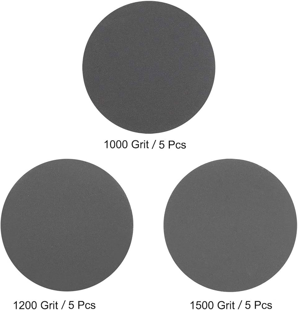 3 Hook and Loop Sanding Disc 1000/1200/1500 Grit Assorted Silicon Carbide Sandpaper for Random Orbit Sander Wet/Dry Polishing 15Pcs