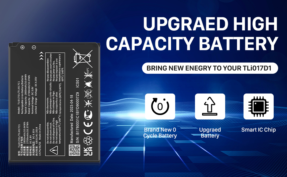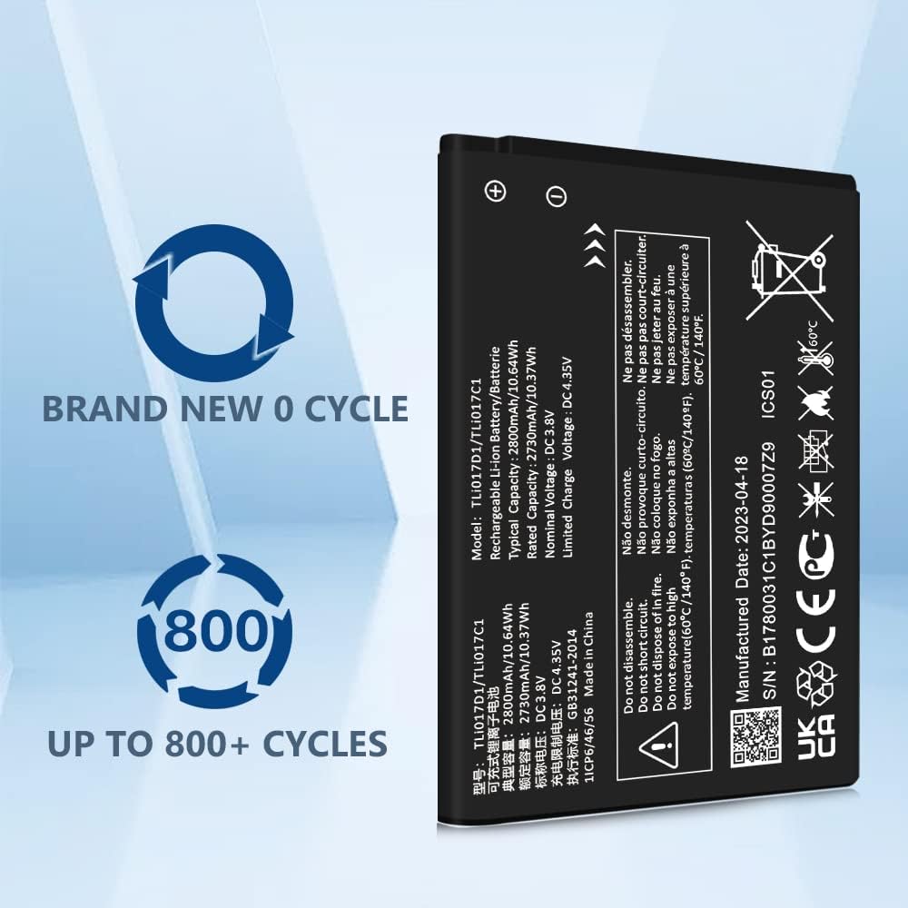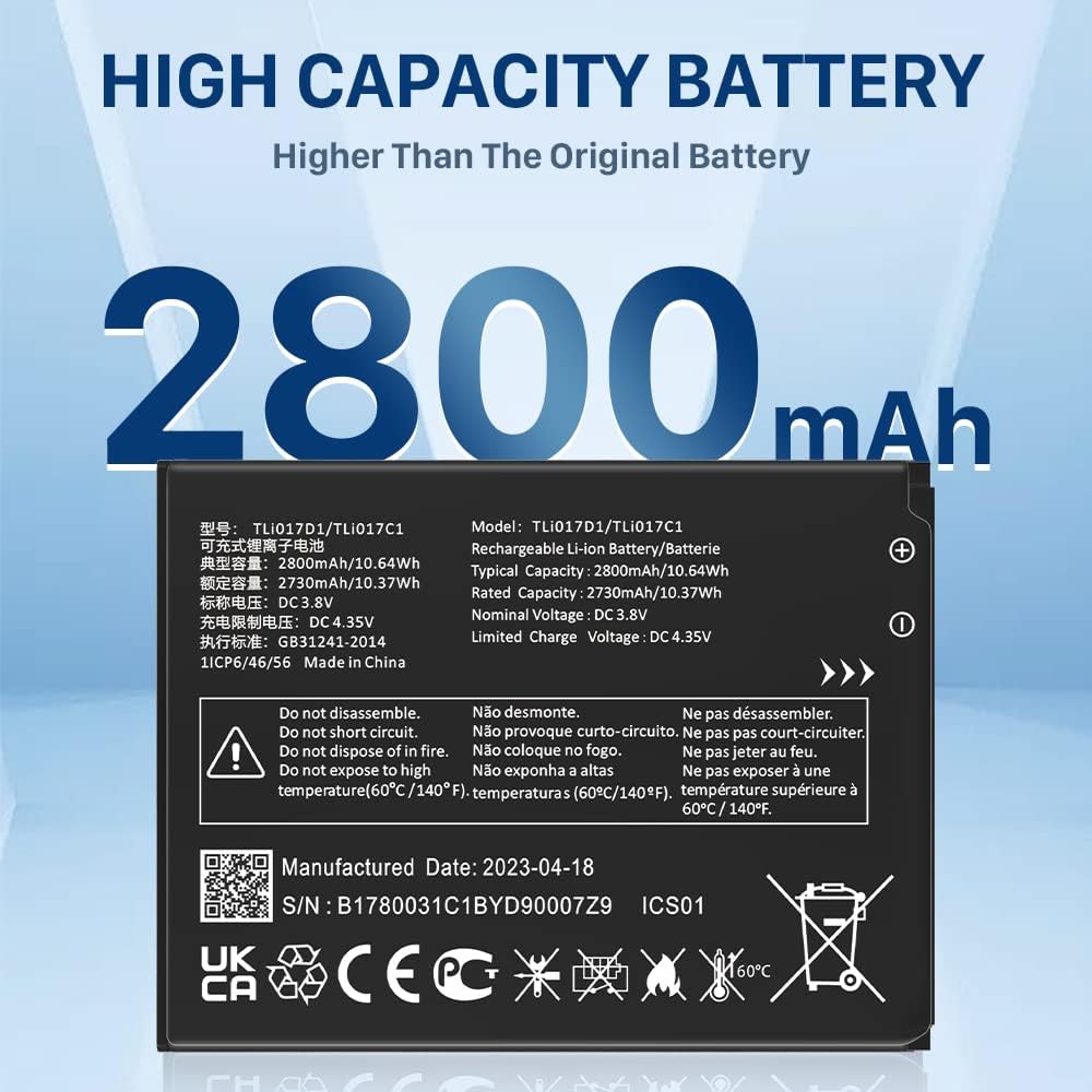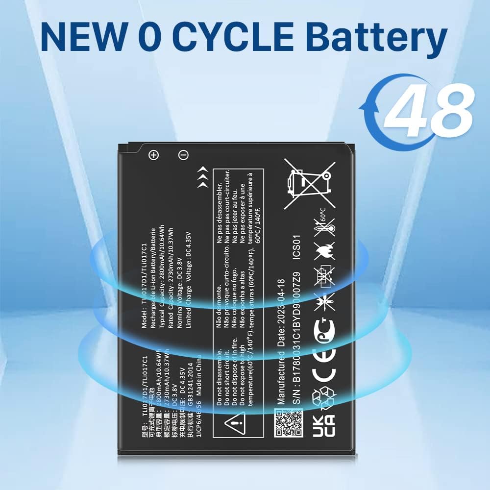 • ✅[سعة عالية 2800 مللي أمبير]: سعة كبيرة مطورة حديثًا تبلغ 2500 مللي أمبير. تتمتع البطارية البديلة TLi017D1 بقدرة أكبر بنسبة 12% من البطاريات الأصلية/الأخرى، دورة 0 جديدة تمامًا، مصممة لتدوم ما يصل إلى 900 دورة شحن لمنح بطارية TLi017D1 حياة جديدة تمامًا.
