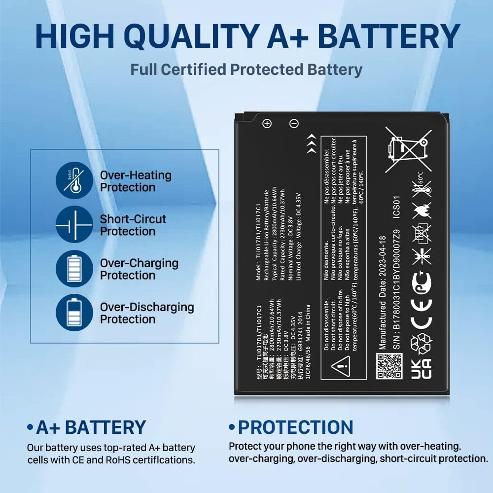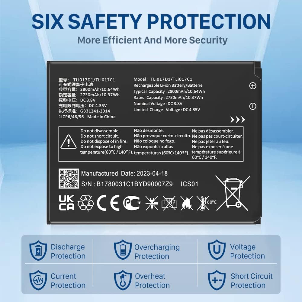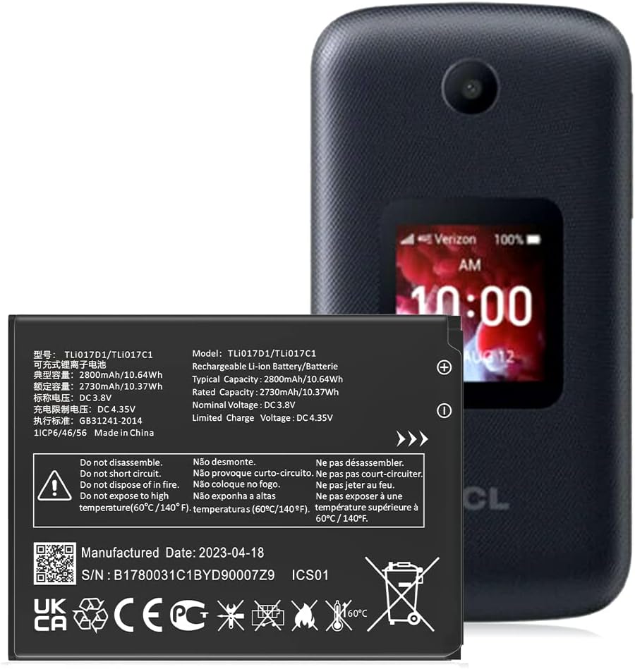• ✅[نموذج متوافق]: هذه البطارية البديلة TLi017D1 المحدثة المتوافقة مع طراز TCL Flip Pro VZW-TCL-4056W TLi017D1 / TLi017C1. يرجى التحقق جيدًا من تطابق الطراز الخاص بك قبل شراء البطارية.