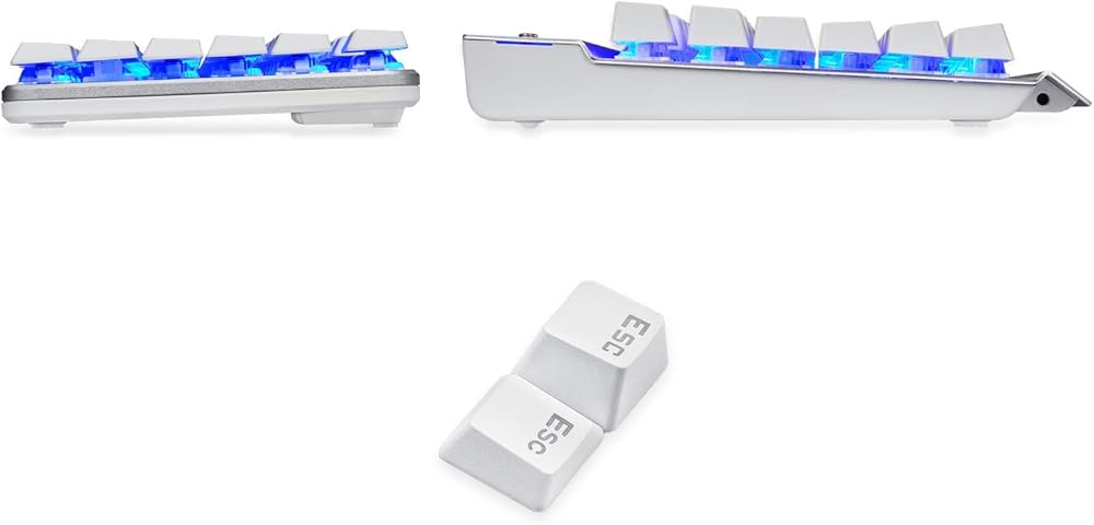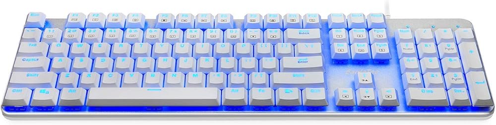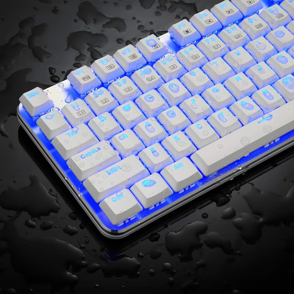 لوحة مفاتيح ميكانيكية للألعاب، نسخة بيضاء، 104 مفتاح، لوحة مفاتيح ميكانيكية بالحجم الكامل منخفضة الحجم مع مفاتيح لوحة مفاتيح ذات ملمس ميكانيكي مخصص (مكافئة بلون بني الكرزي). مصممة لطول العمر مع قوة تحمل واستجابة أكبر. توفر المفاتيح الهادئة للوحة المفاتيح الميكانيكية مقاومة متوسطة، ونضرة ولكن صوت ضغطة أكثر هدوءًا، ونصائح لمس دقيقة للحصول على أفضل أداء في الكتابة والألعاب. مفاتيح من أعلى جودة، تم اختبارها من أجل 50 مليون ضربة مفاتيح