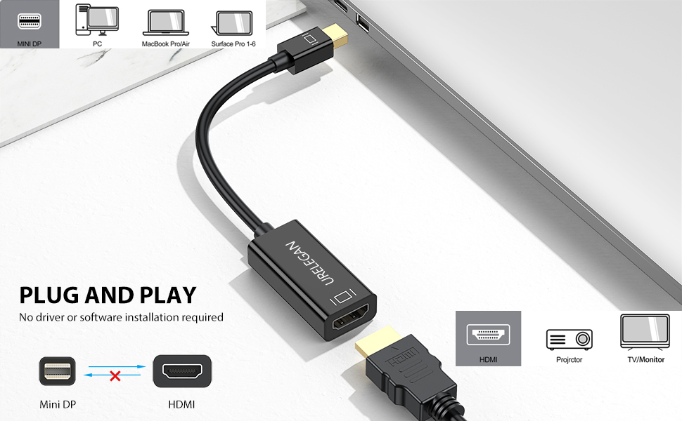 • 【تصميم مضغوط】منفذ العرض الصغير إلى محول HDMI خفيف الوزن وقابل للحمل. أداة فكرة للعمل المنزلي والترفيه. مثالية لبث الفيديو في كل مكان. يلزم وجود كابل HDMI منفصل.