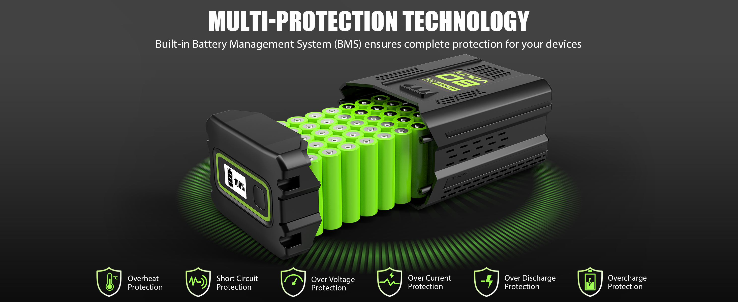 الطرز المتوافقة: بديل مثالي لأدوات الطاقة اللاسلكية وأعمال الشاحن Greenworks 80V. تشمل جميع أدوات Greenworks Pro 80V Max Power للحديقة/الحديقة، وأنظمة الطاقة، ونمط الحياة، والتنظيف الداخلي، والتنظيف الخارجي، والتنقل